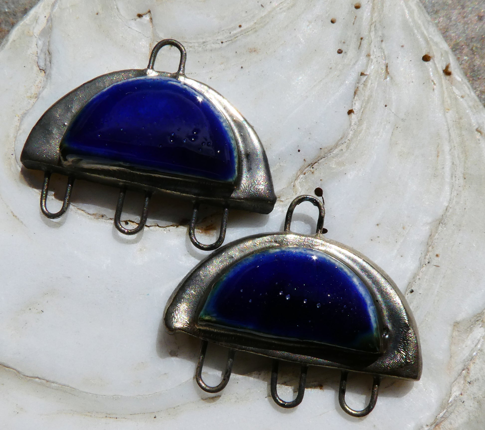 Ceramic Semi Circle Three Hoop Moulded Connectors -Mirror Blue