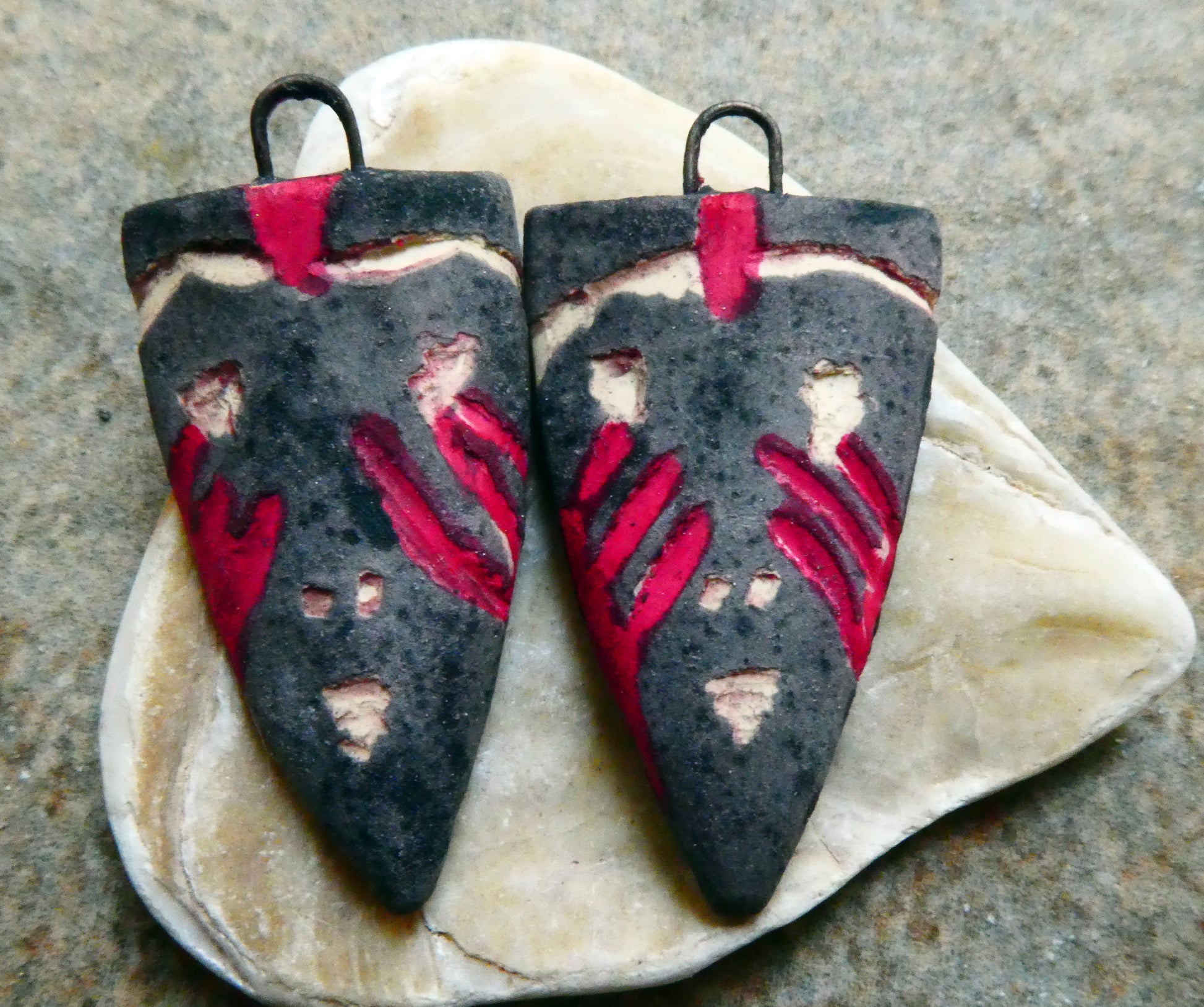 Ceramic Sgraffito Apache Mask Earring Charms- #4