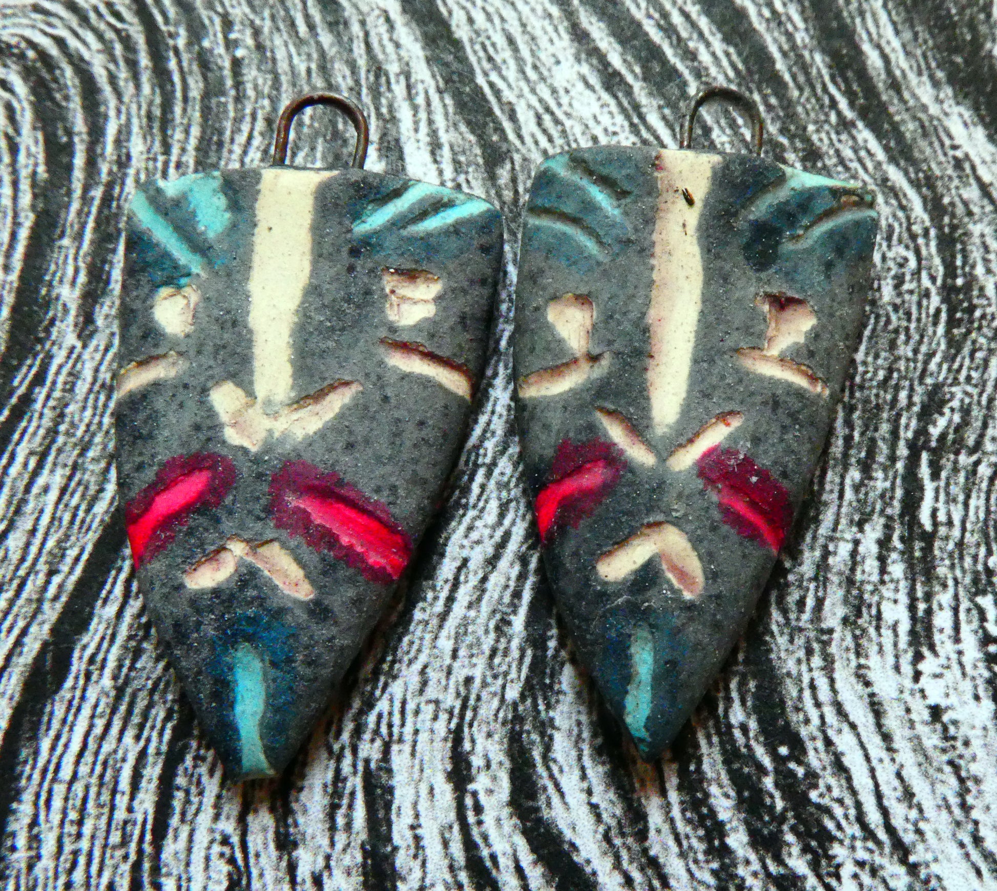 Ceramic Sgraffito Apache Mask Earring Charms- #9