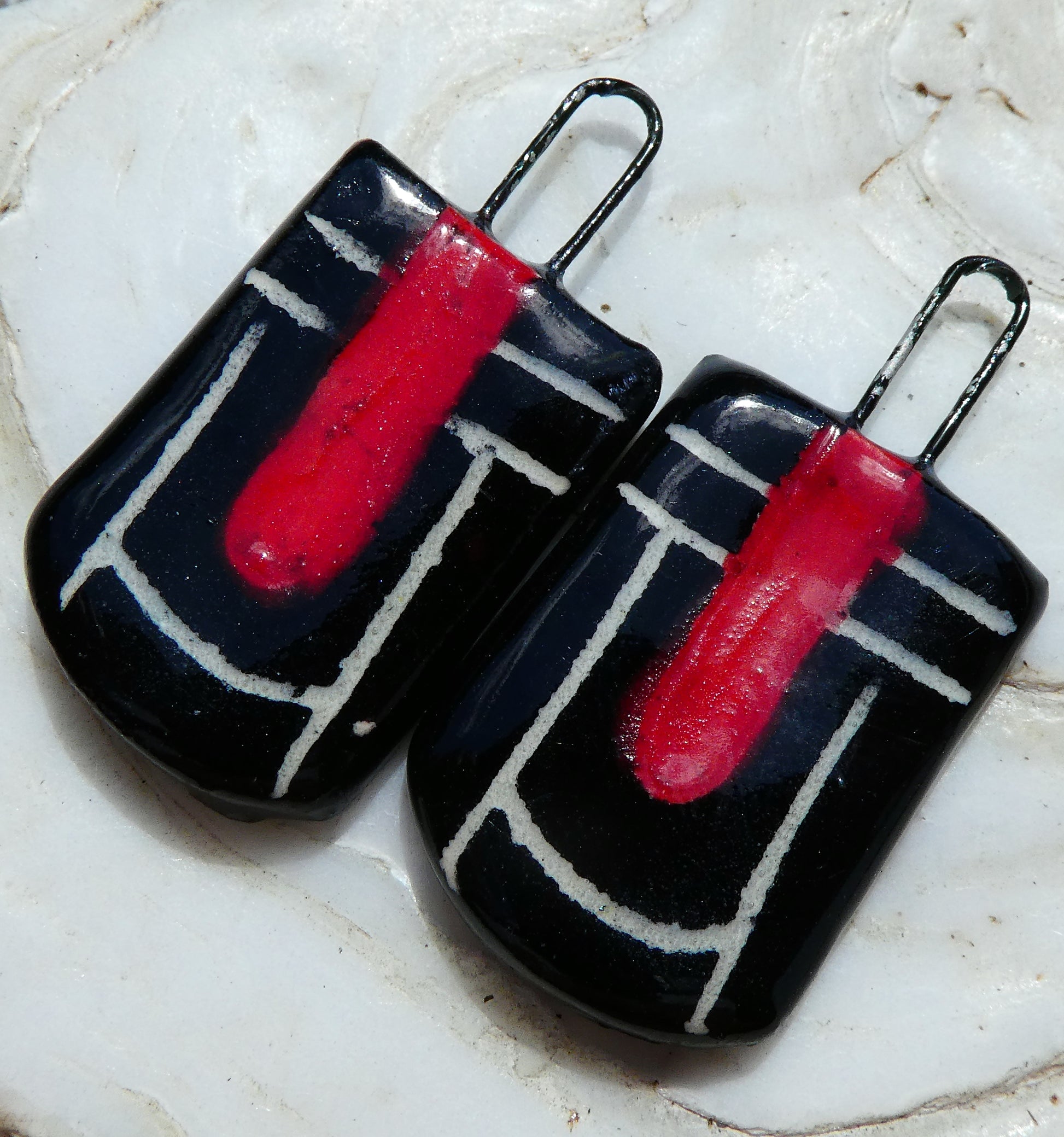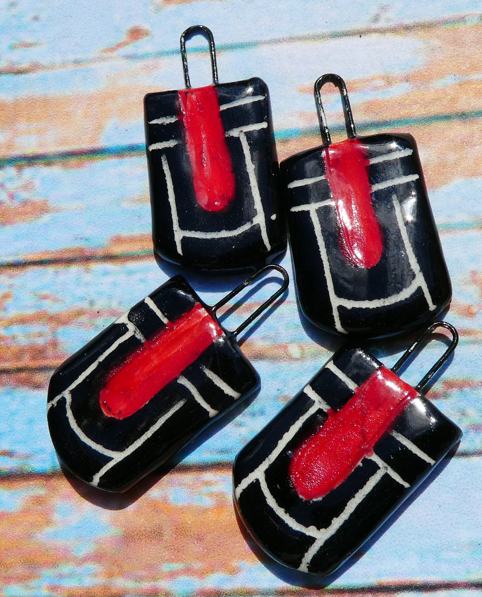 Ceramic Sgraffito Charms -Red