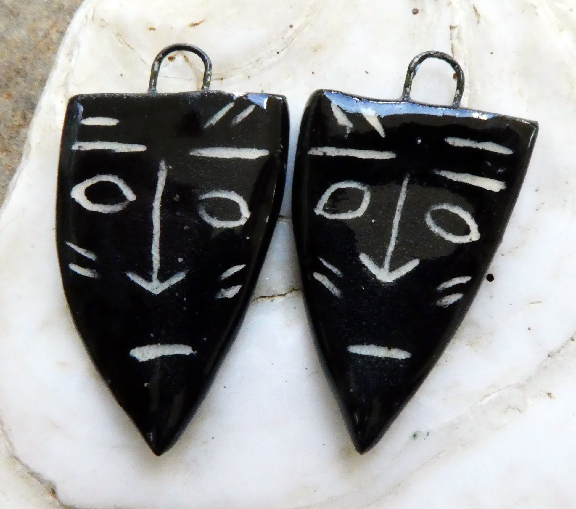 Ceramic Sgraffito Tribal Mask Gloss Earring Charms #2