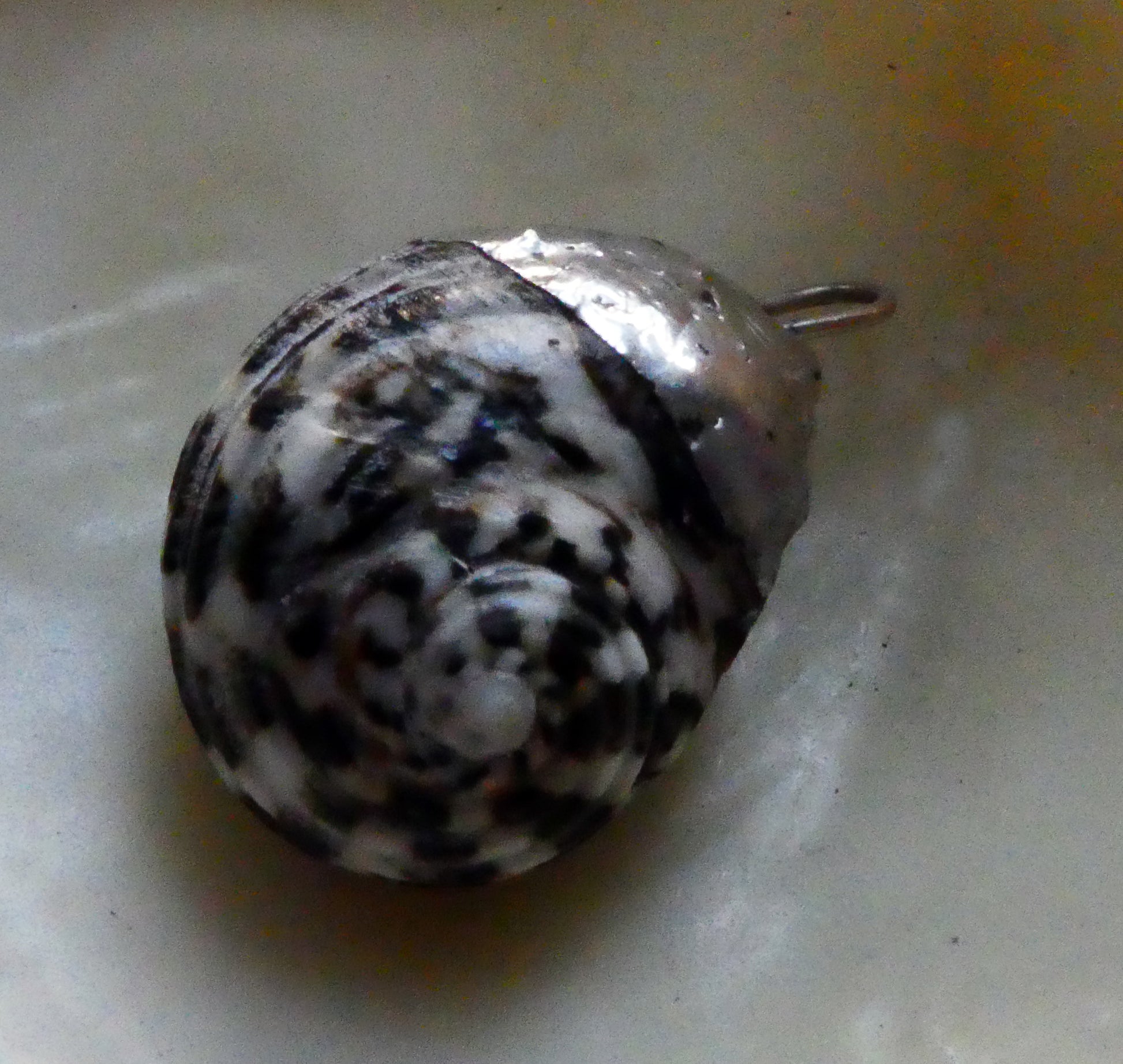 A shell with a lead-free, jewellery grade solder cap, with a Sterling Silver hoop.