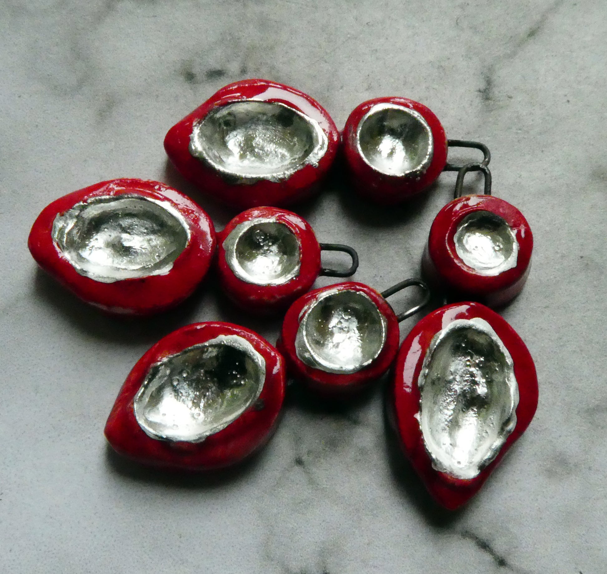 Ceramic Silver Pool Earring Charms - Red