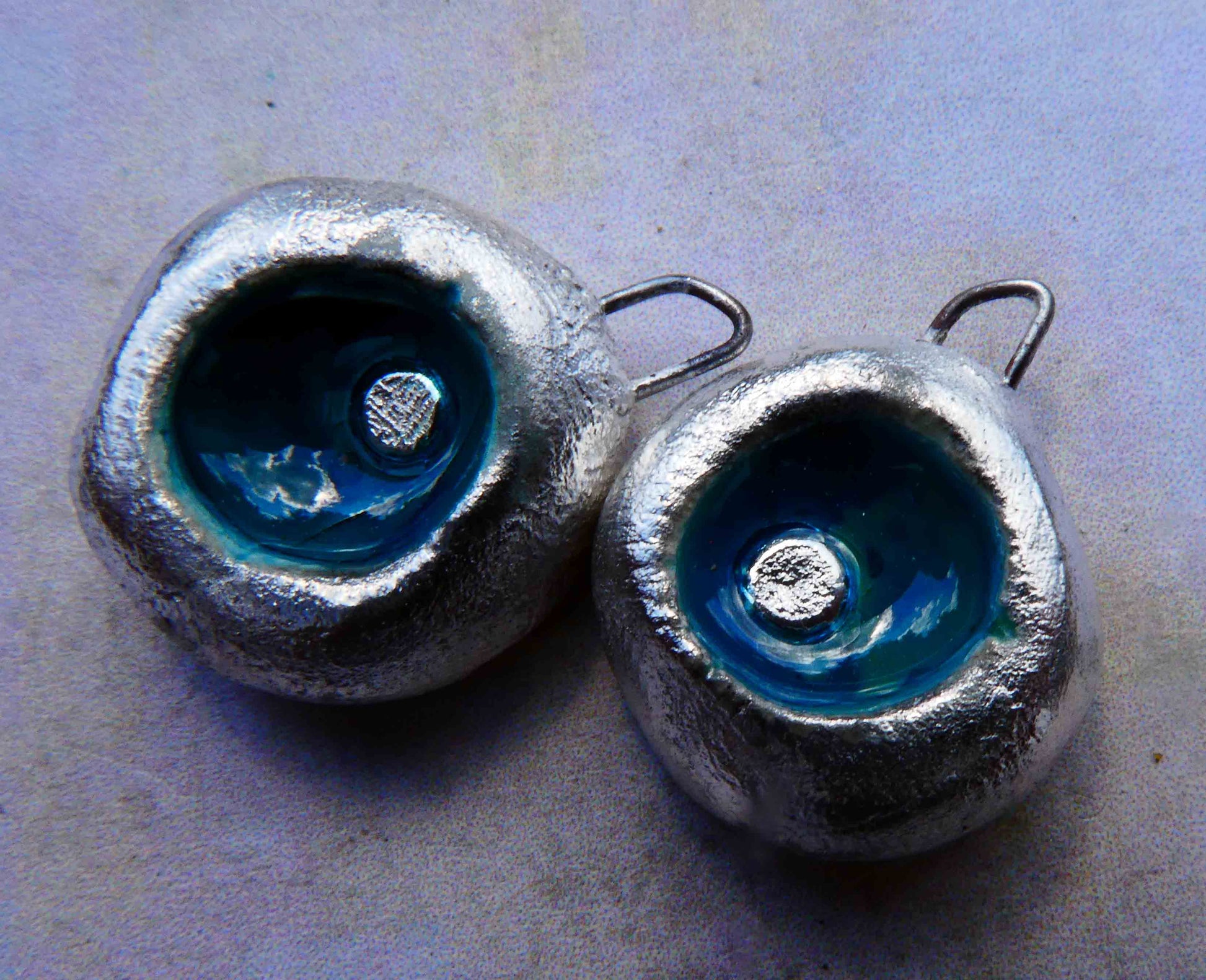 Ceramic Silvery Bowl Enamel Earring Charms -Deep Turquoise