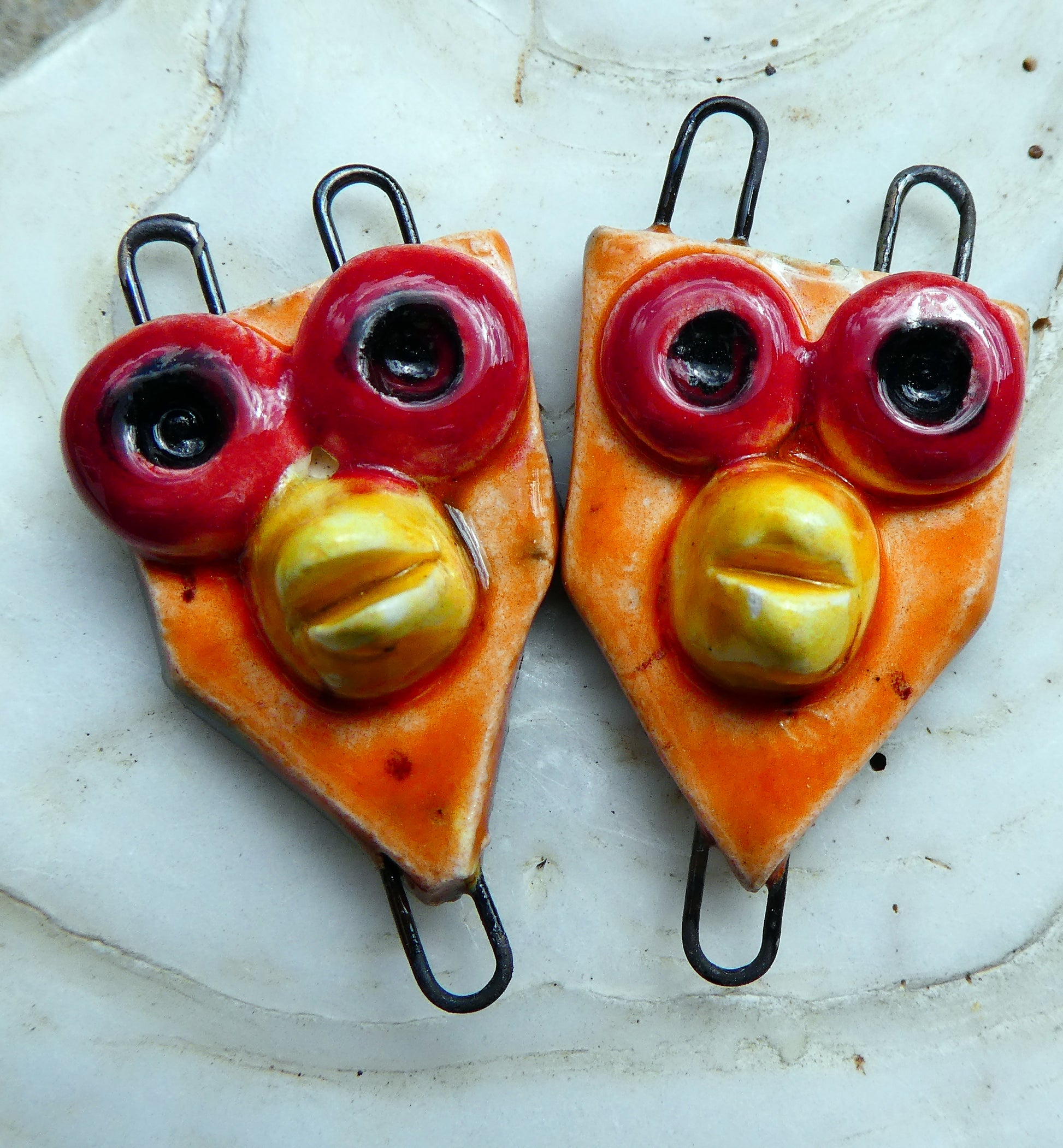 Hand formed in Earthstone, and high fired. Fired again with bronze clay, Gloss, Red, Black, Saffron and Wildfire glaze, and fired once more.