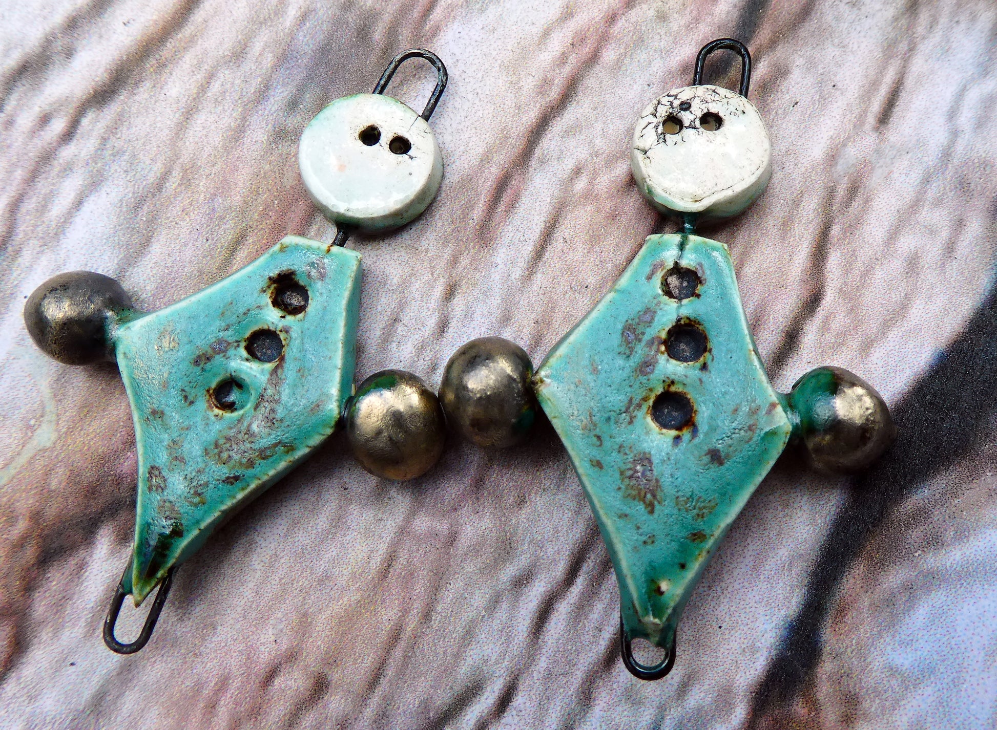 Ceramic Simple Souls Connectors - Turquoise Sprinkle