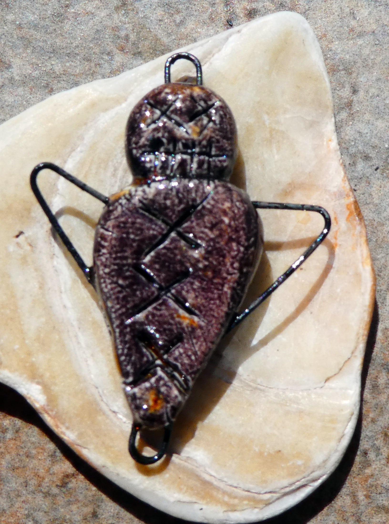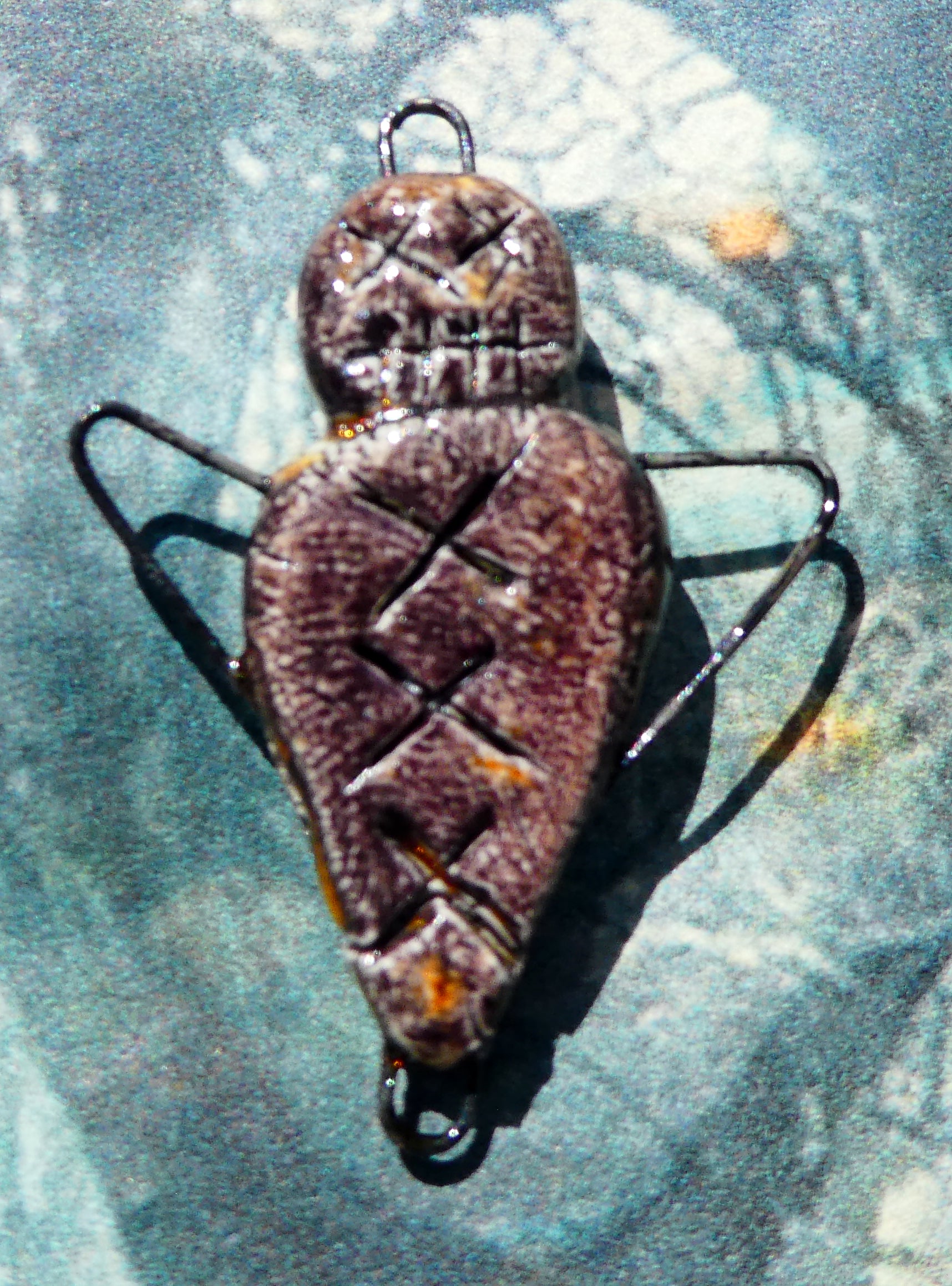 Hand formed in Earthstone and high fired. Fired again with oxide. Applied with Crackle glaze and fired once more.