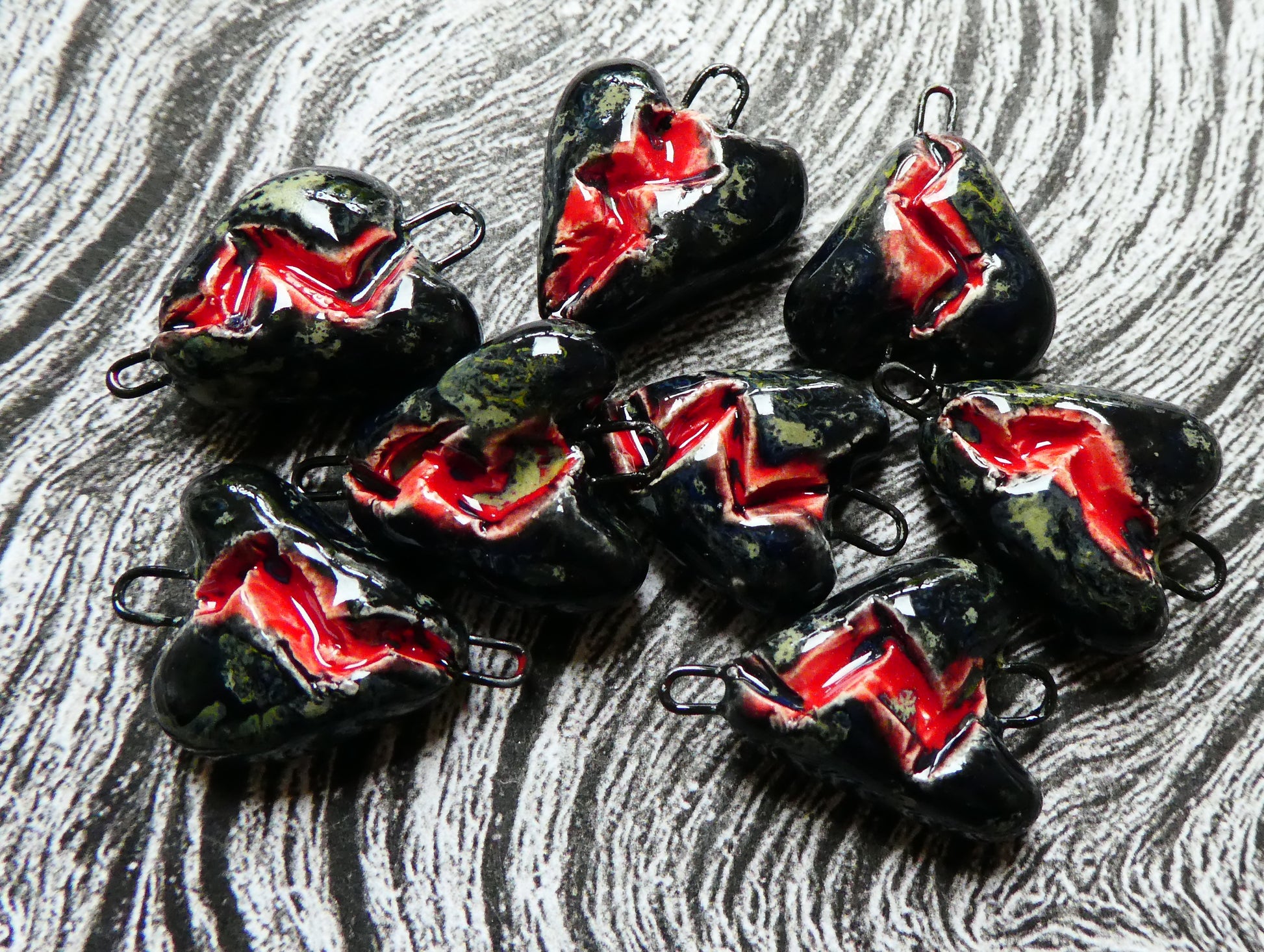 Hand formed in Earthstone and high fired. Then fired again with Red and Constellation glaze.