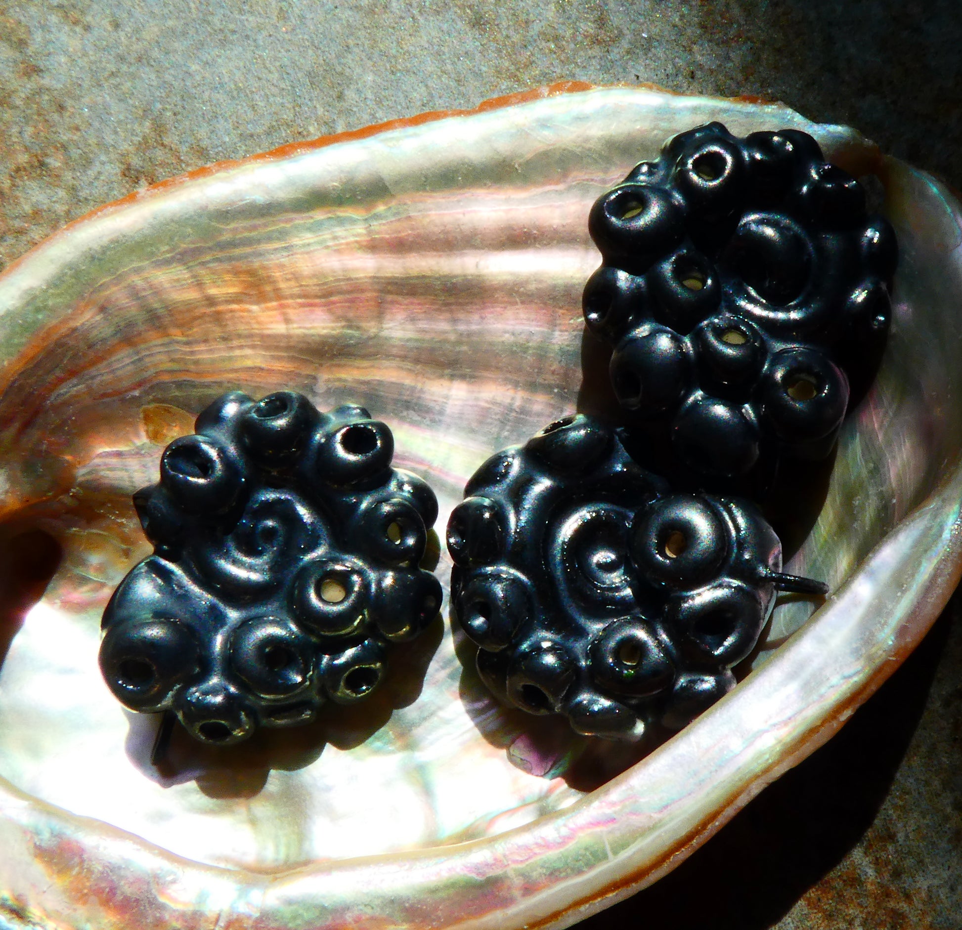 Hand formed in Earthstone and high fired. Then fired again with Pewter glaze..