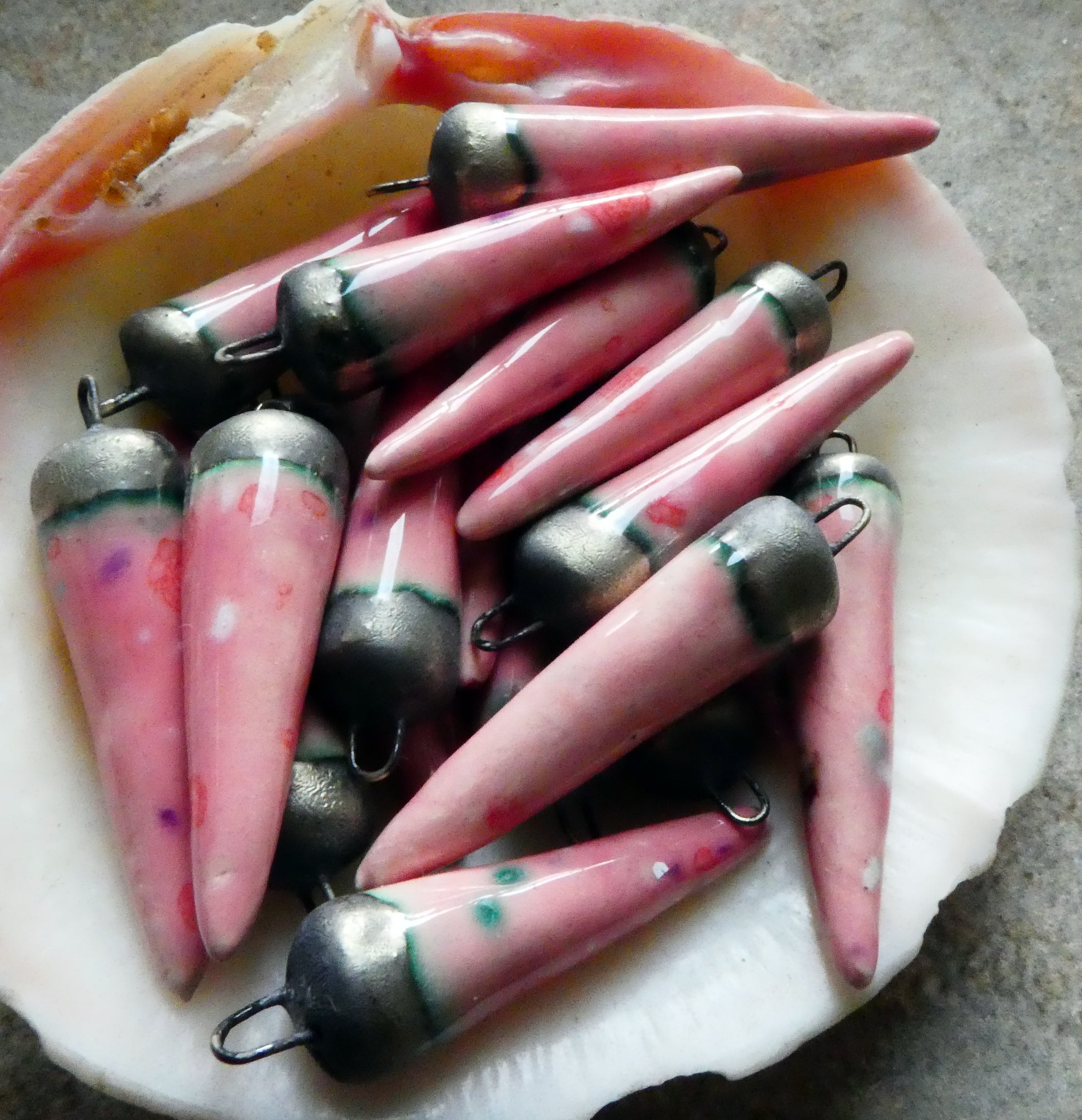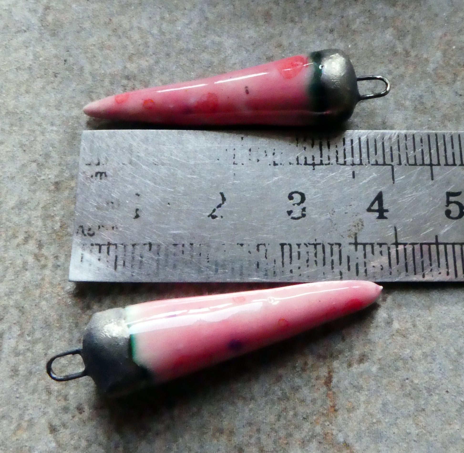All slightly different, but roughly 30mms in length, and very lightweight. ©ScorchedEarthDesigns