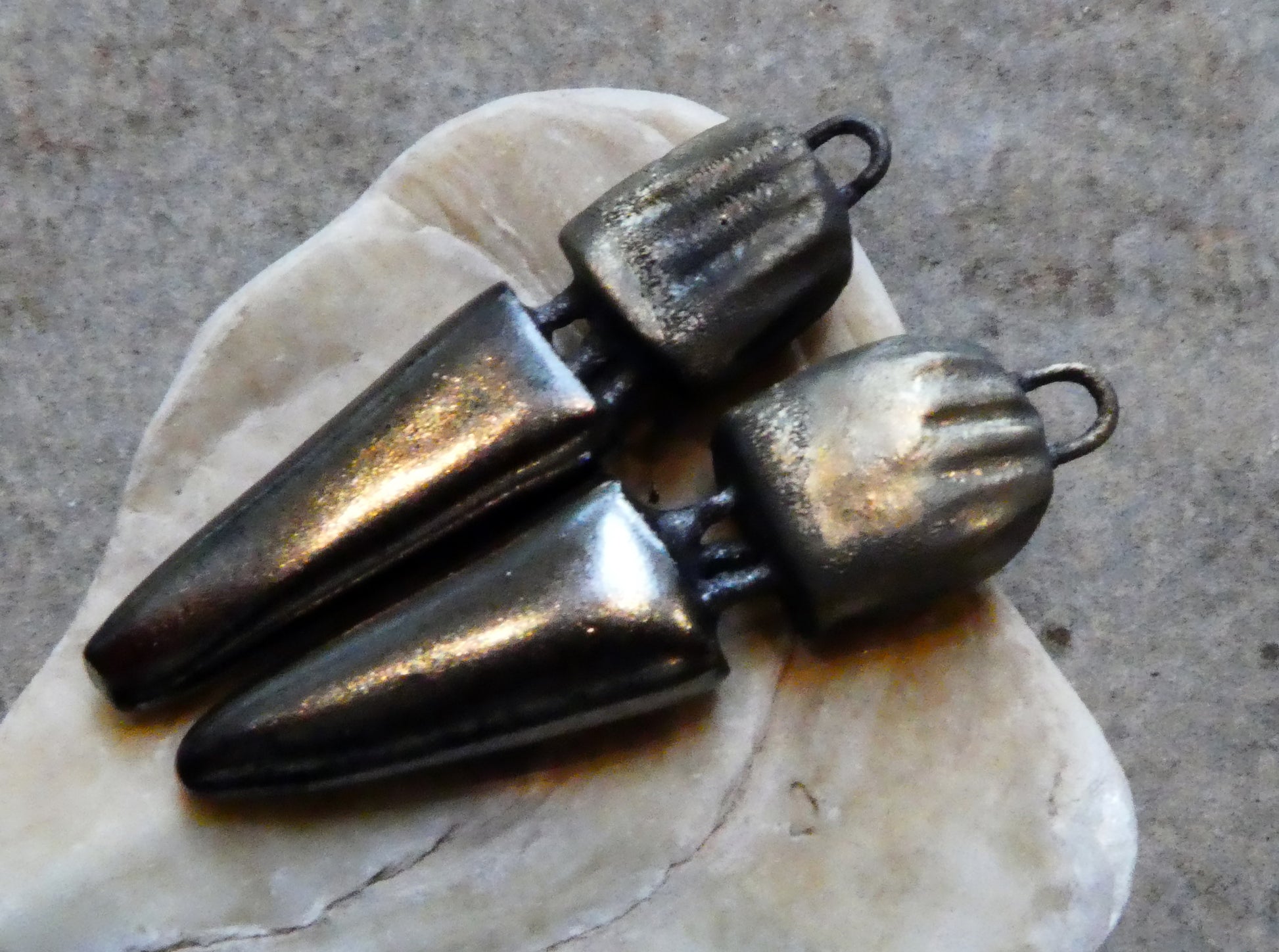 Ceramic Split Flat Spikes Earring Charms - Pewter