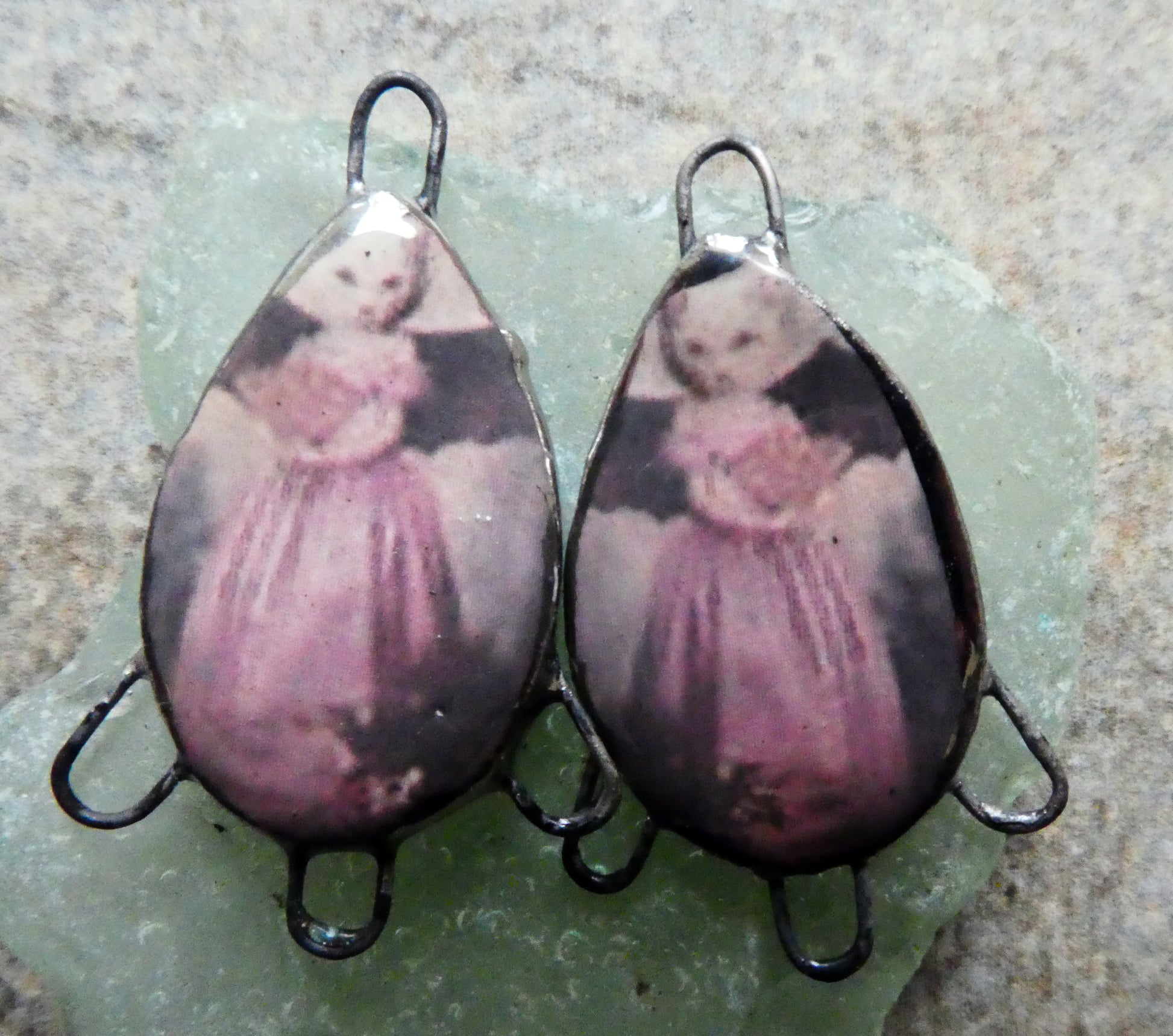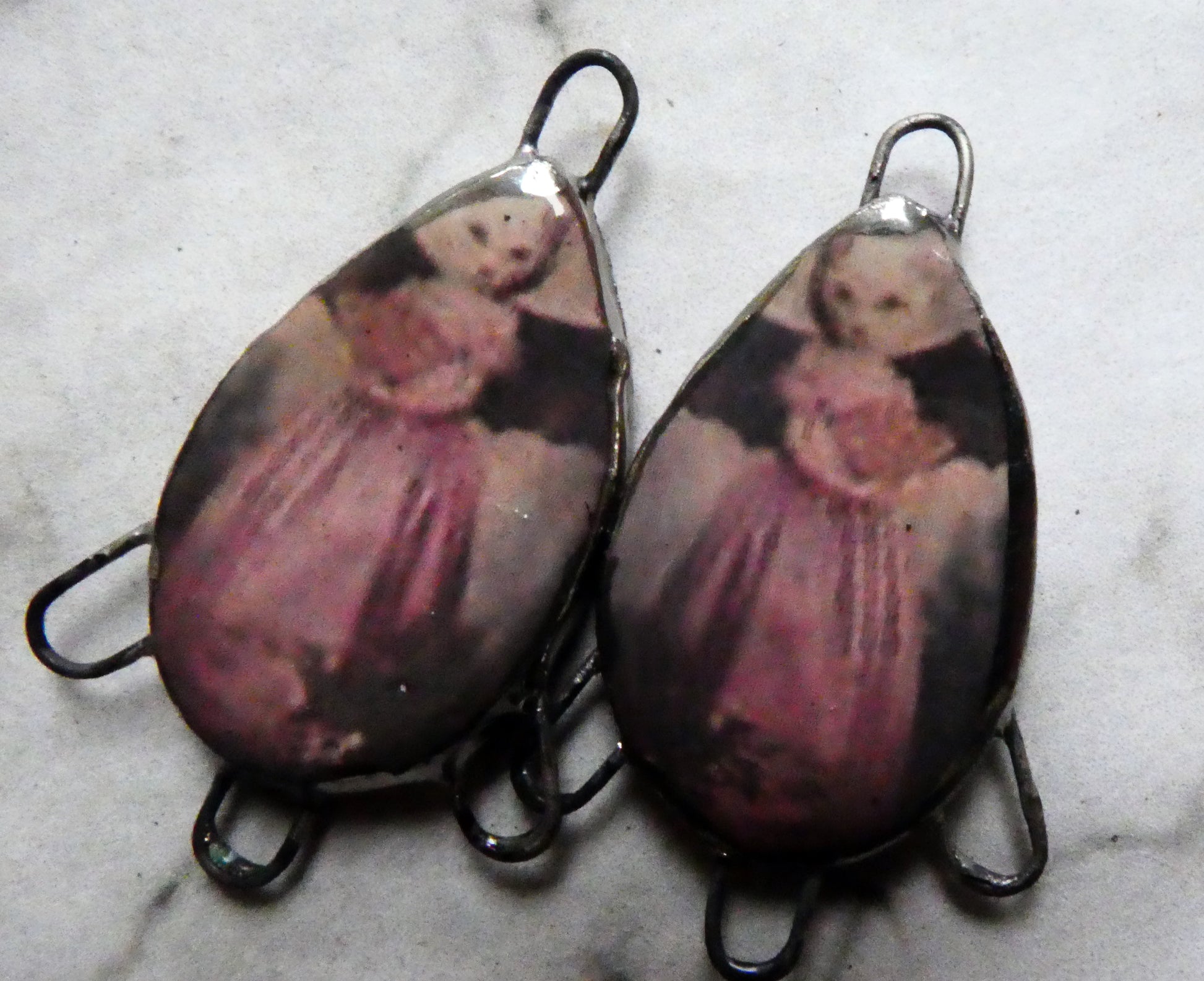 Ceramic Spooky Cat Decal Earring Connectors #2