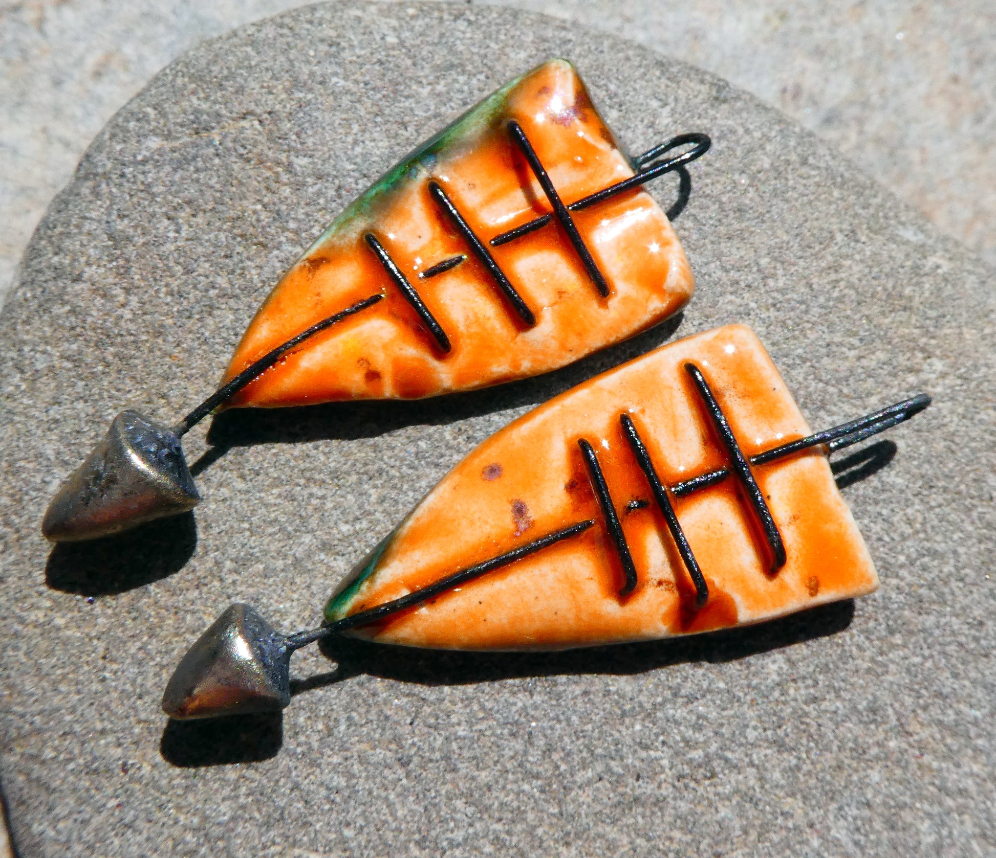 Hand formed in Earthstone and high fired with embedded staples. Fired again with Bronze clay and Wildfire glaze.