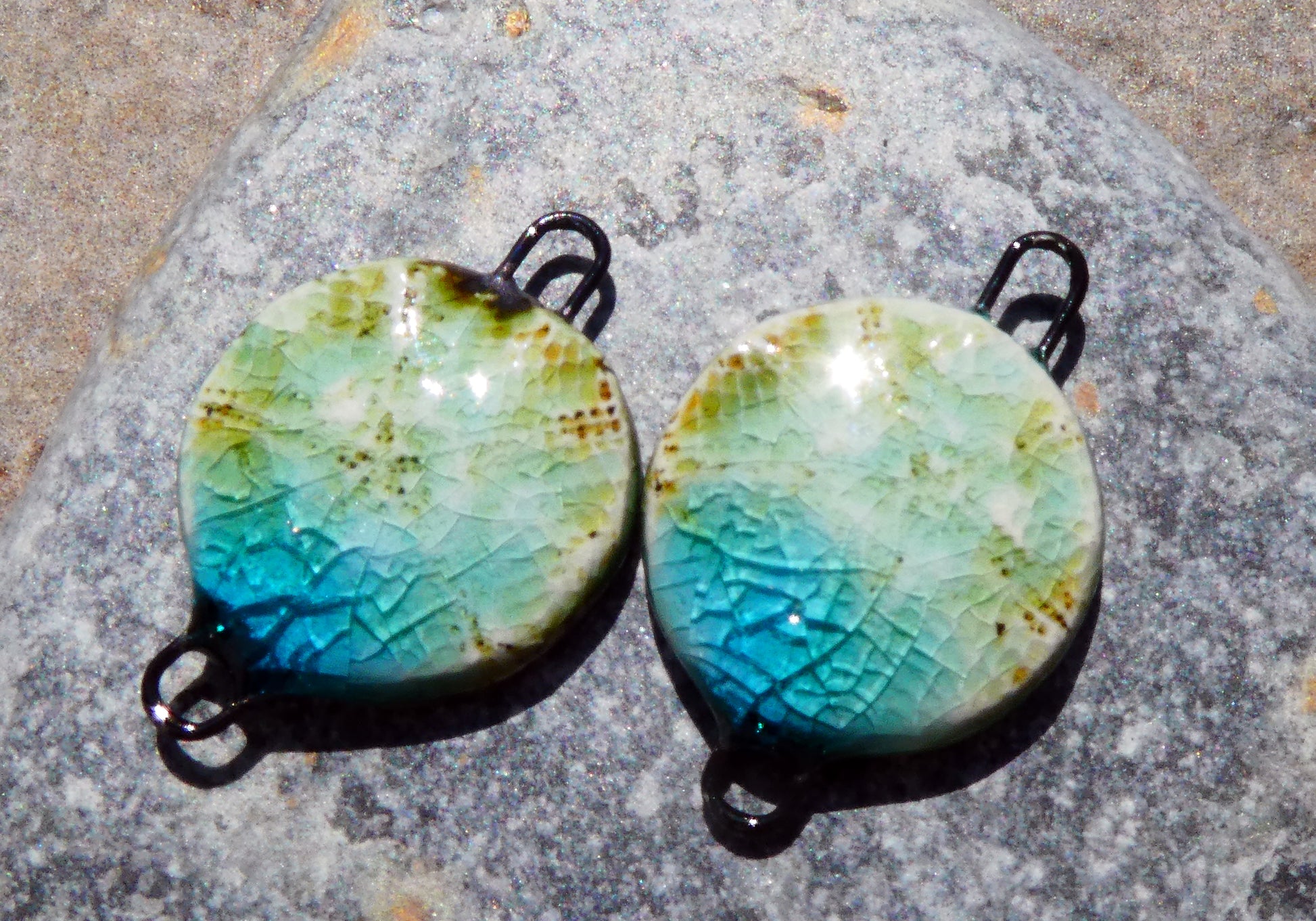 Ceramic Starfish Textured Earring Connectors -Turquoise Crackle