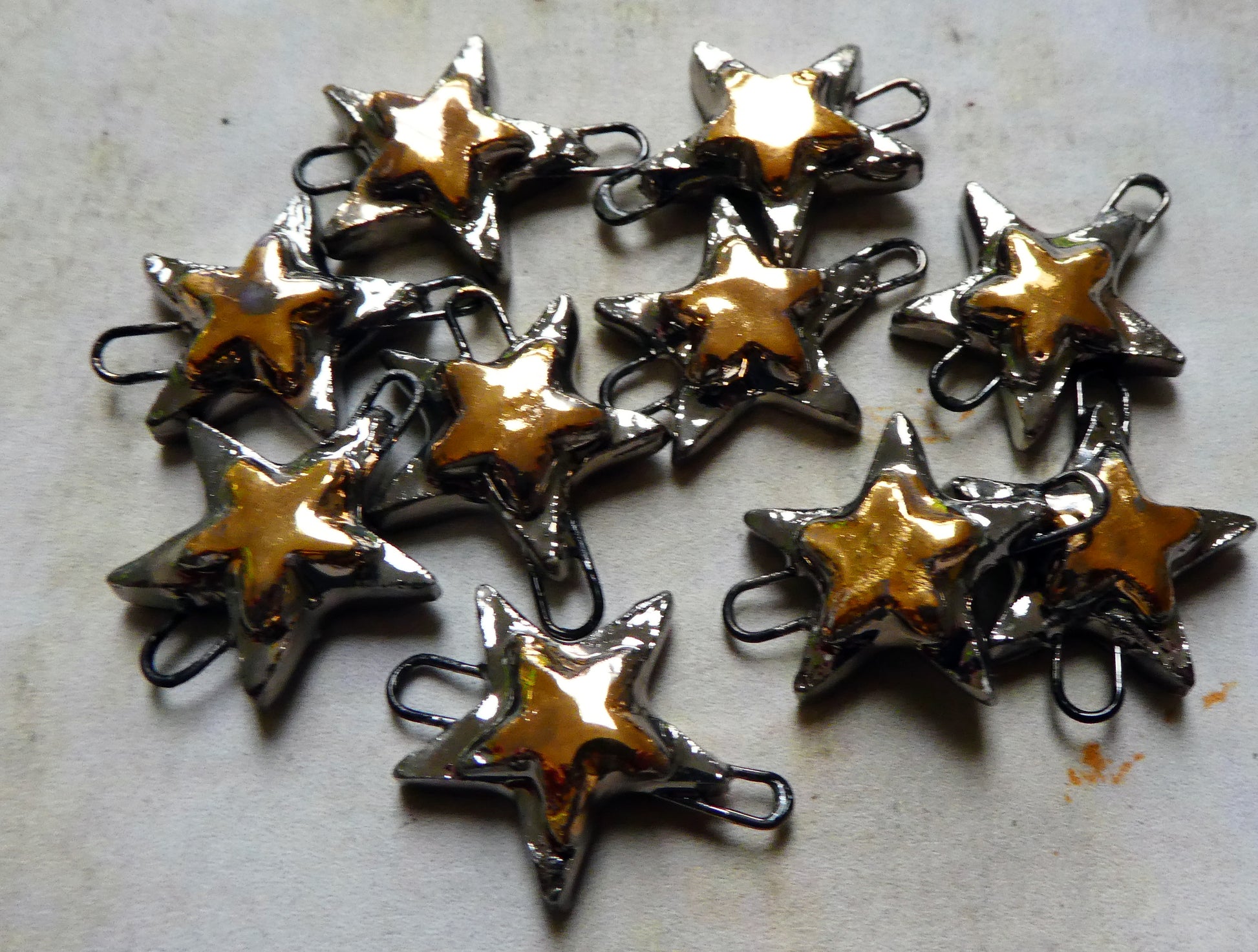 Ceramic Moulded Stars Earring Connectors -Platinum and Gold Lustre