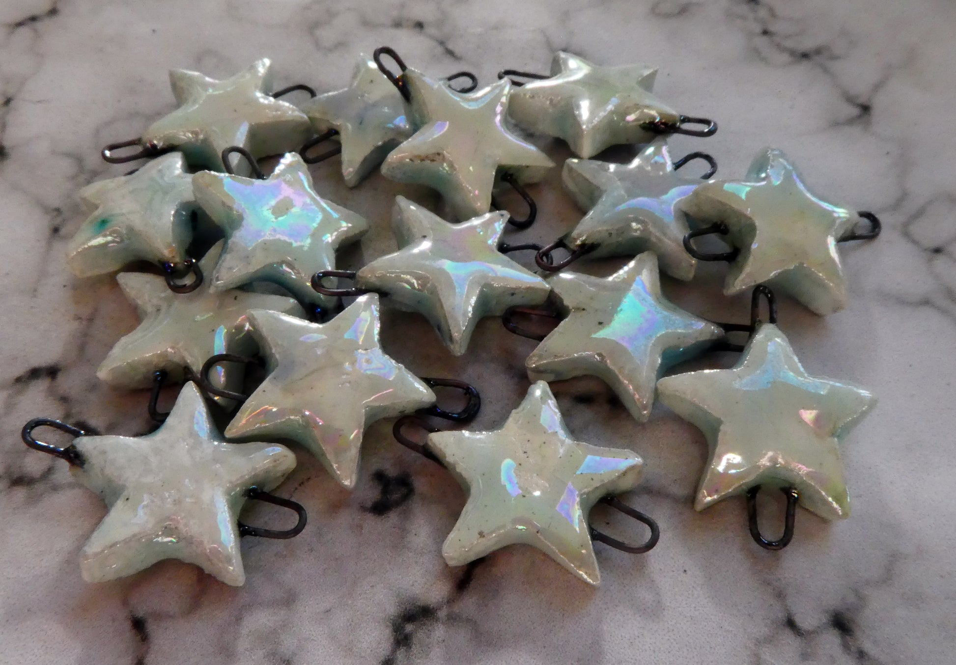 Porcelain Stars Earring Connectors -Mother of Pearl Lustre