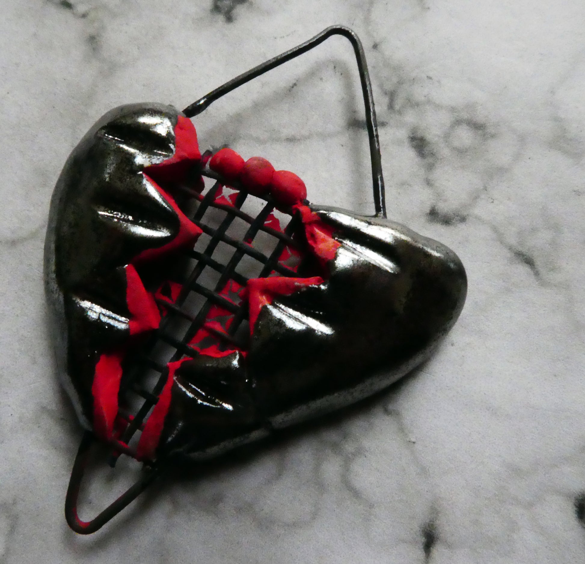 Hand formed in Earthstone with embedded steel mesh, and high fired. Then fired again with Gloria and Ruby glaze.