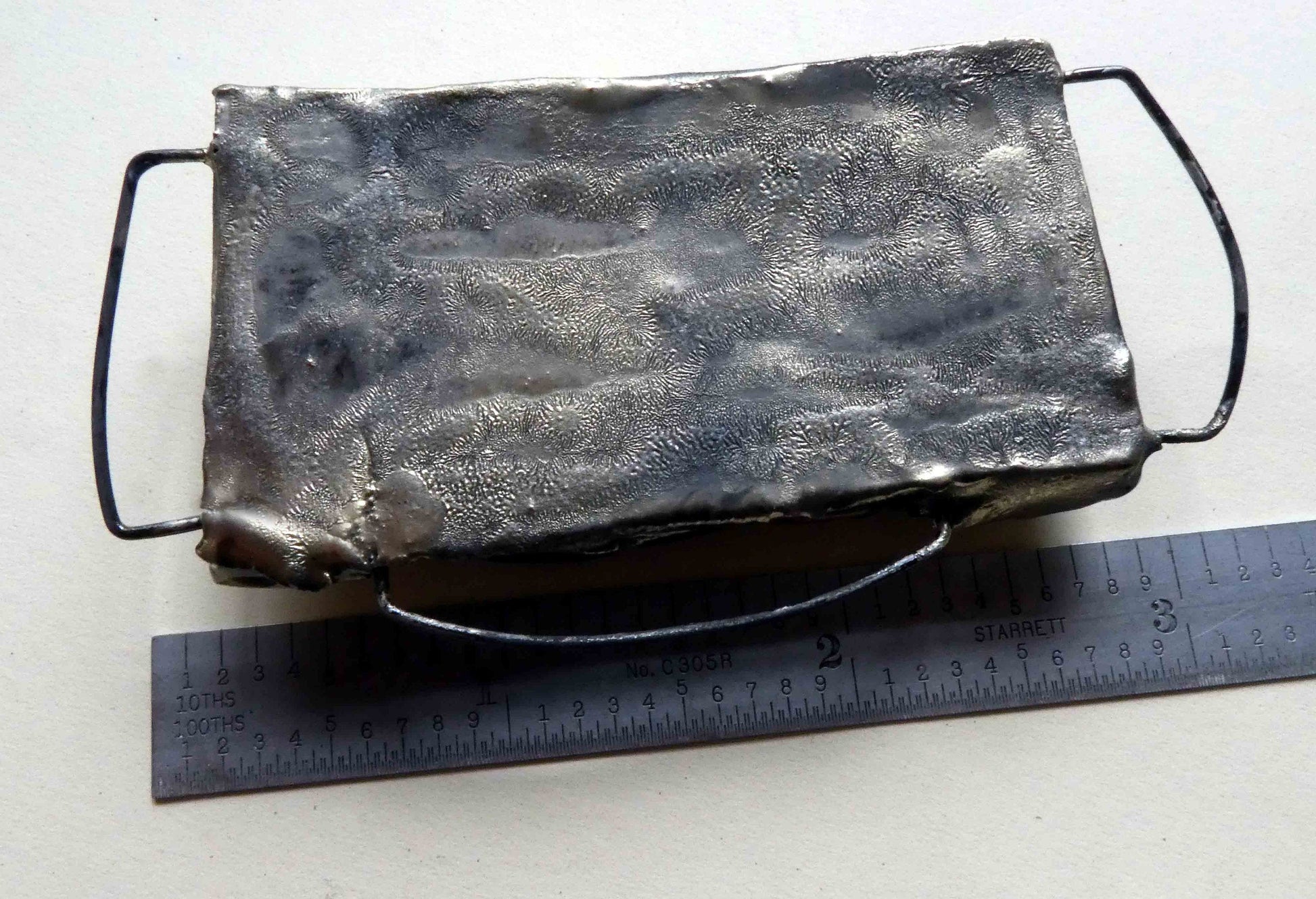 Hand sculpted in Earthstone and high fired. Then fired again with bronze clay and mixed stony coloured glazes. With four small hoops in the middle, and three around the sides. Could be worn vertically or horizontally. It's a big, weighty piece, and one of a kind. 3 inches, plus hoops, by 1.75 inches. ©ScorchedEarthDesigns