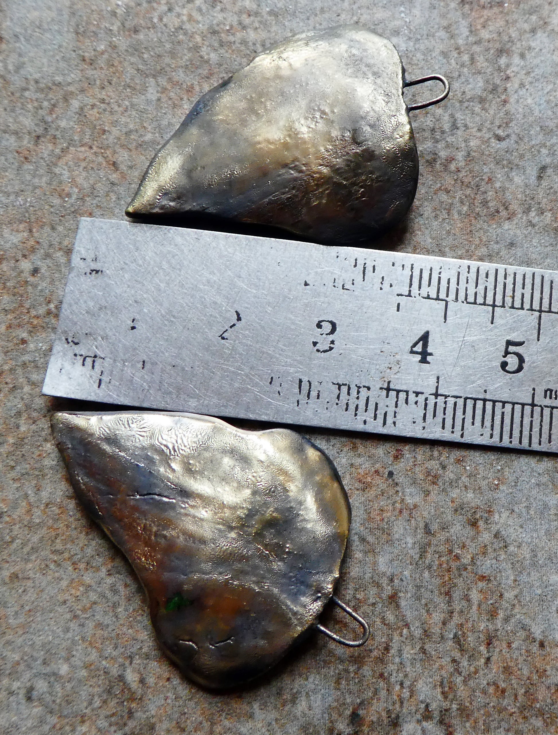 Hand formed in Earthstone and high fired with embedded leaves. Then fired again with Bronze clay and mixed glazes.