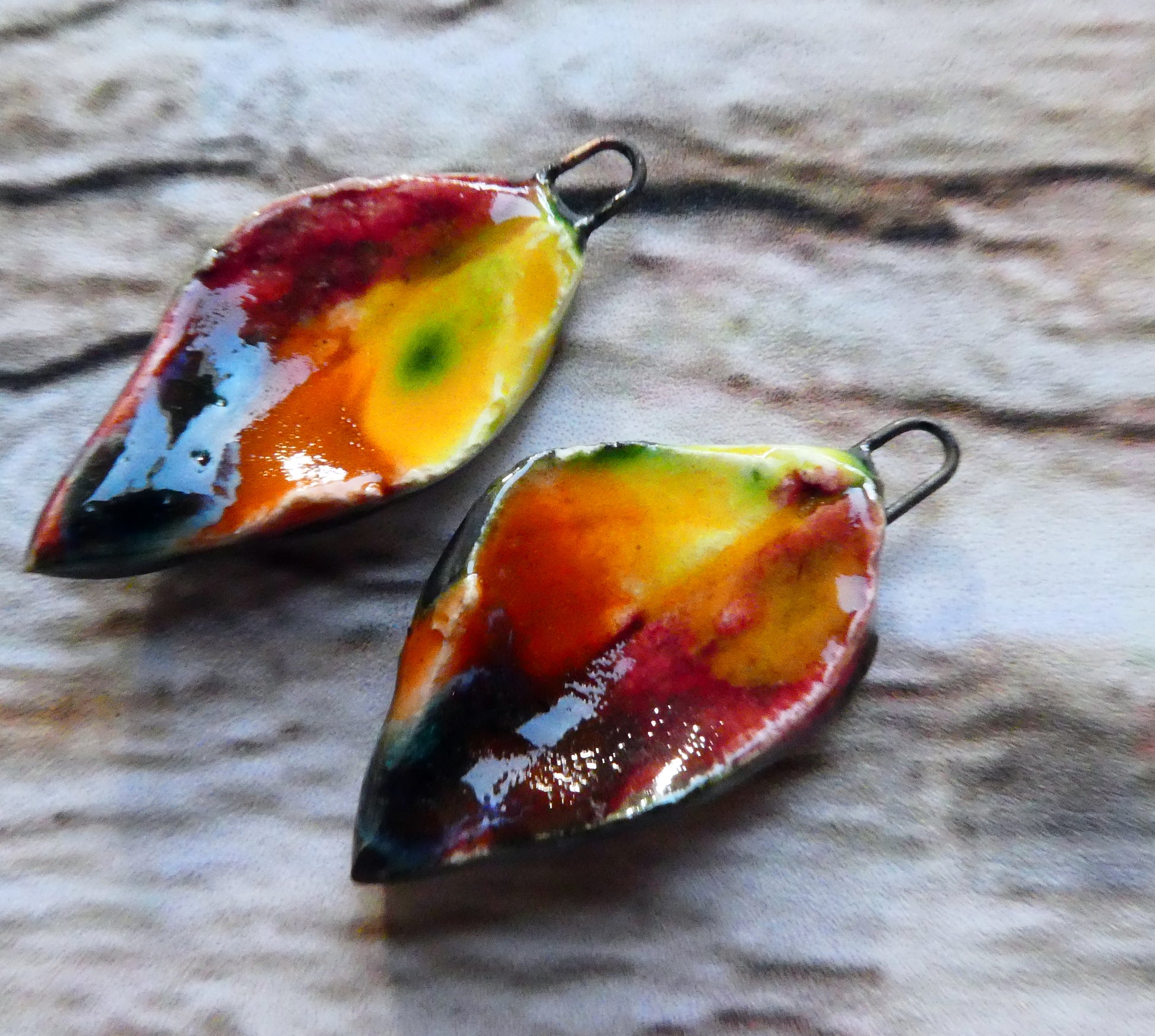A pair of Autumn leaf earring charms.