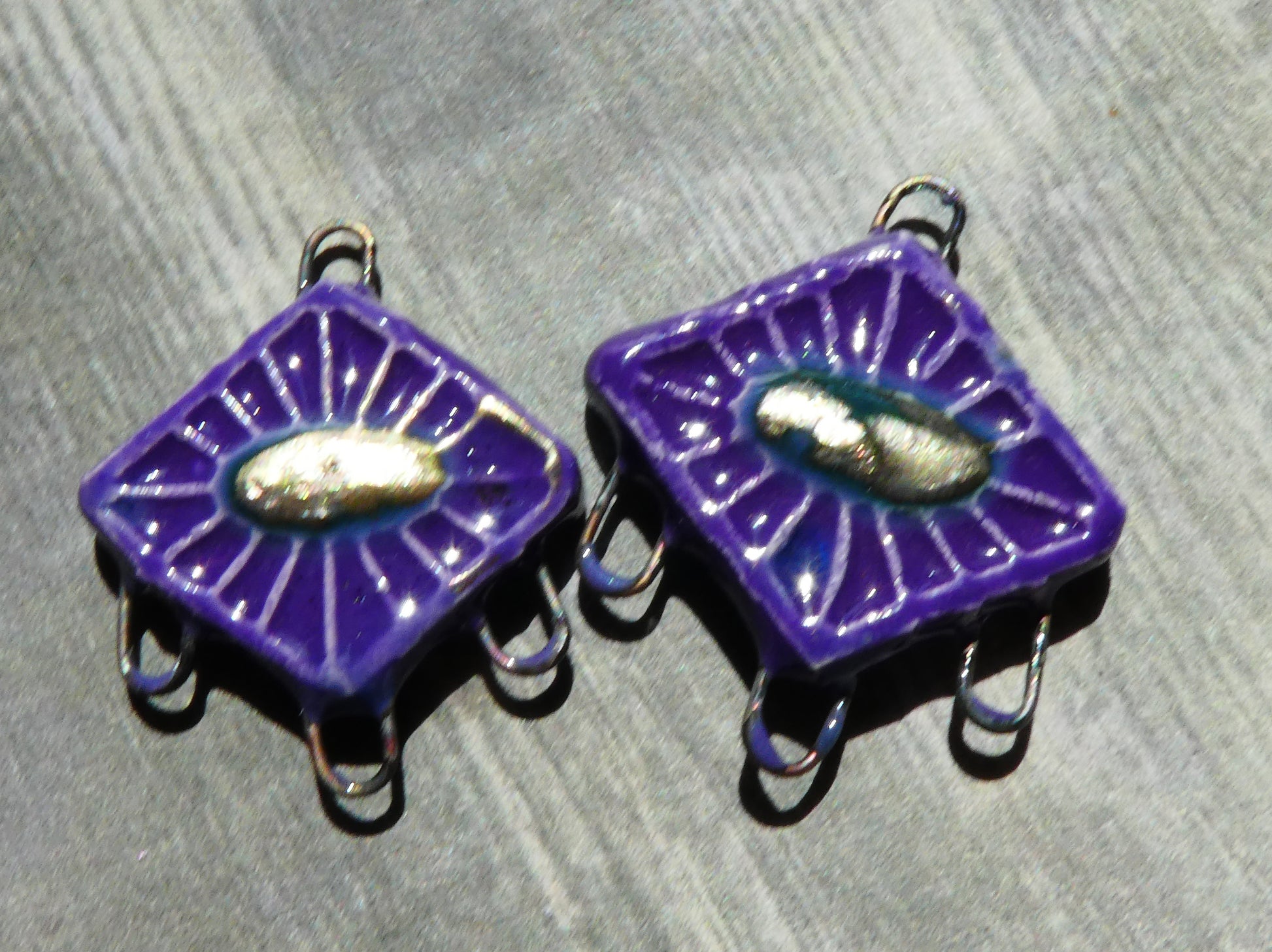 Ceramic Textured Diamond Earring Connectors -Dark Purple