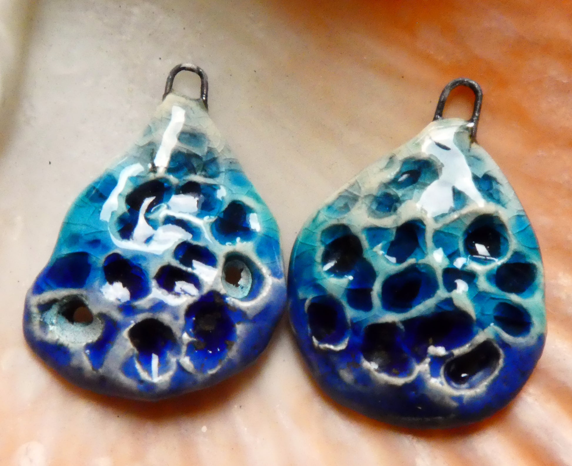 Ceramic Textured Enamel Earring Charms - Midnight Blue and Turquoise#3