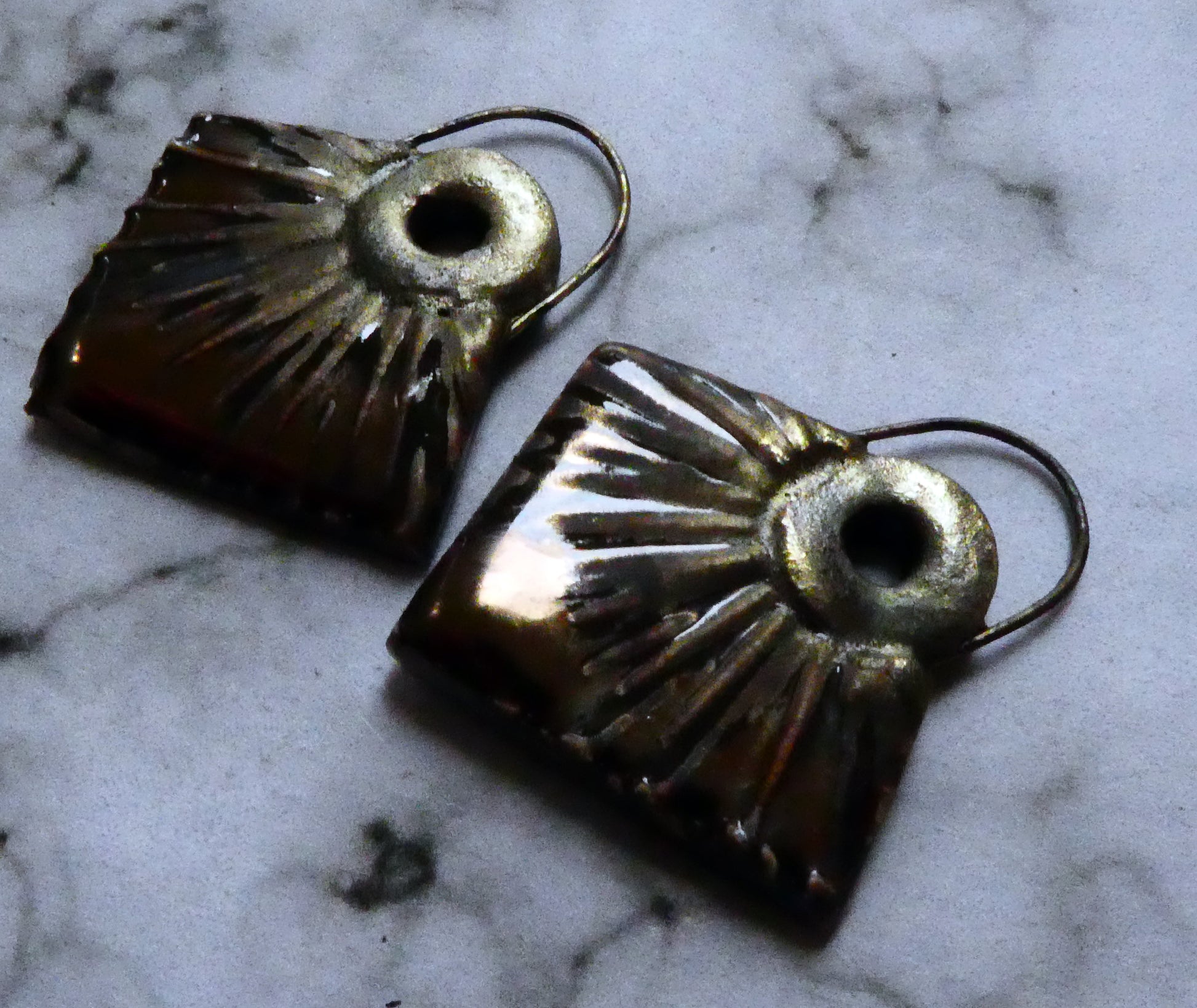 Ceramic Textured Fan Earring Charms -Glossy Gold