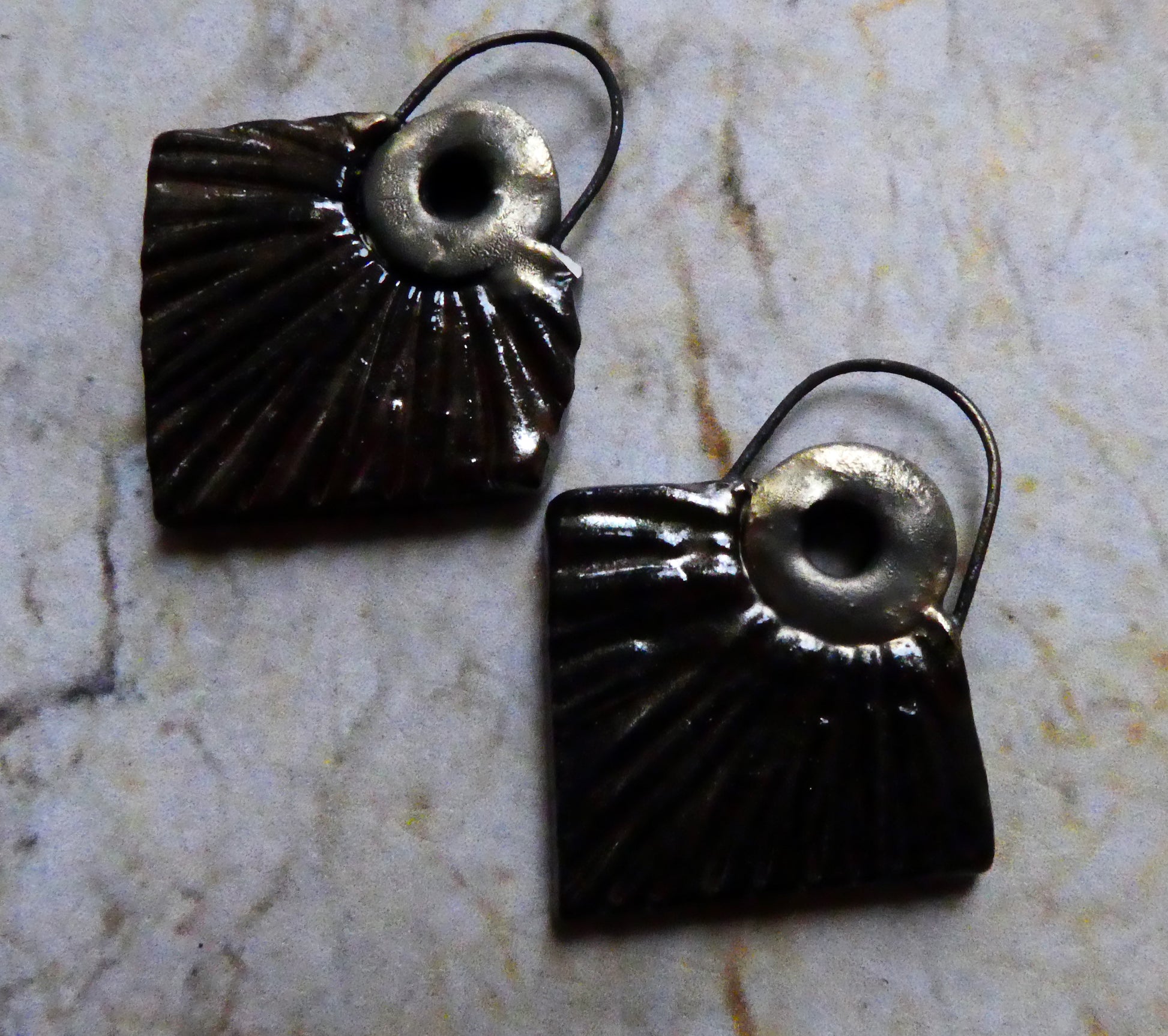 Hand formed in Earthstone and high fired.  Applied with  Bronze clay and Gloria glaze and fired again.