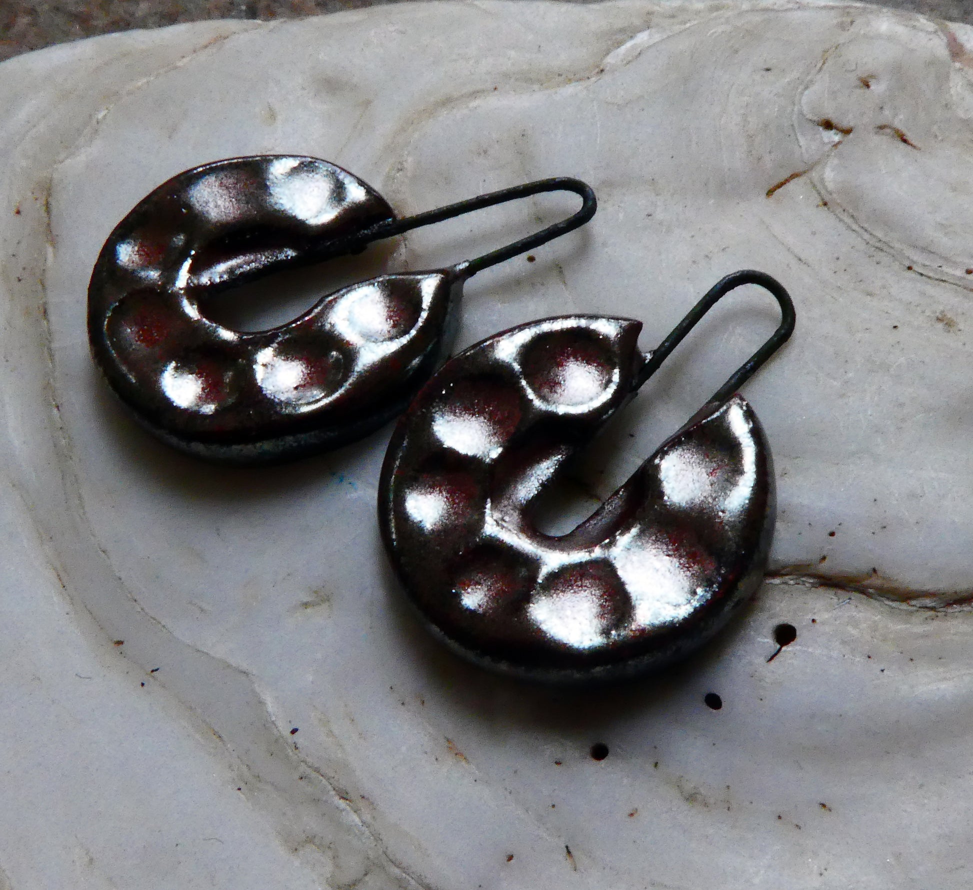 Ceramic Textured Long Hoop Horseshoe Earring Charms - Baroque
