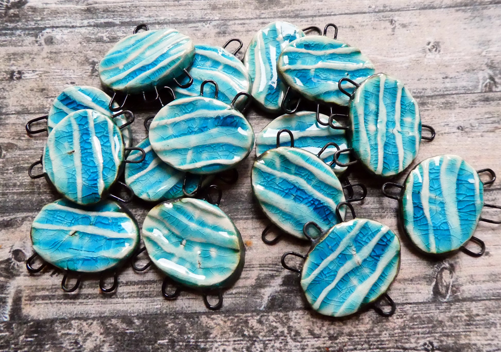 Ceramic Textured Wave Earring Connectors