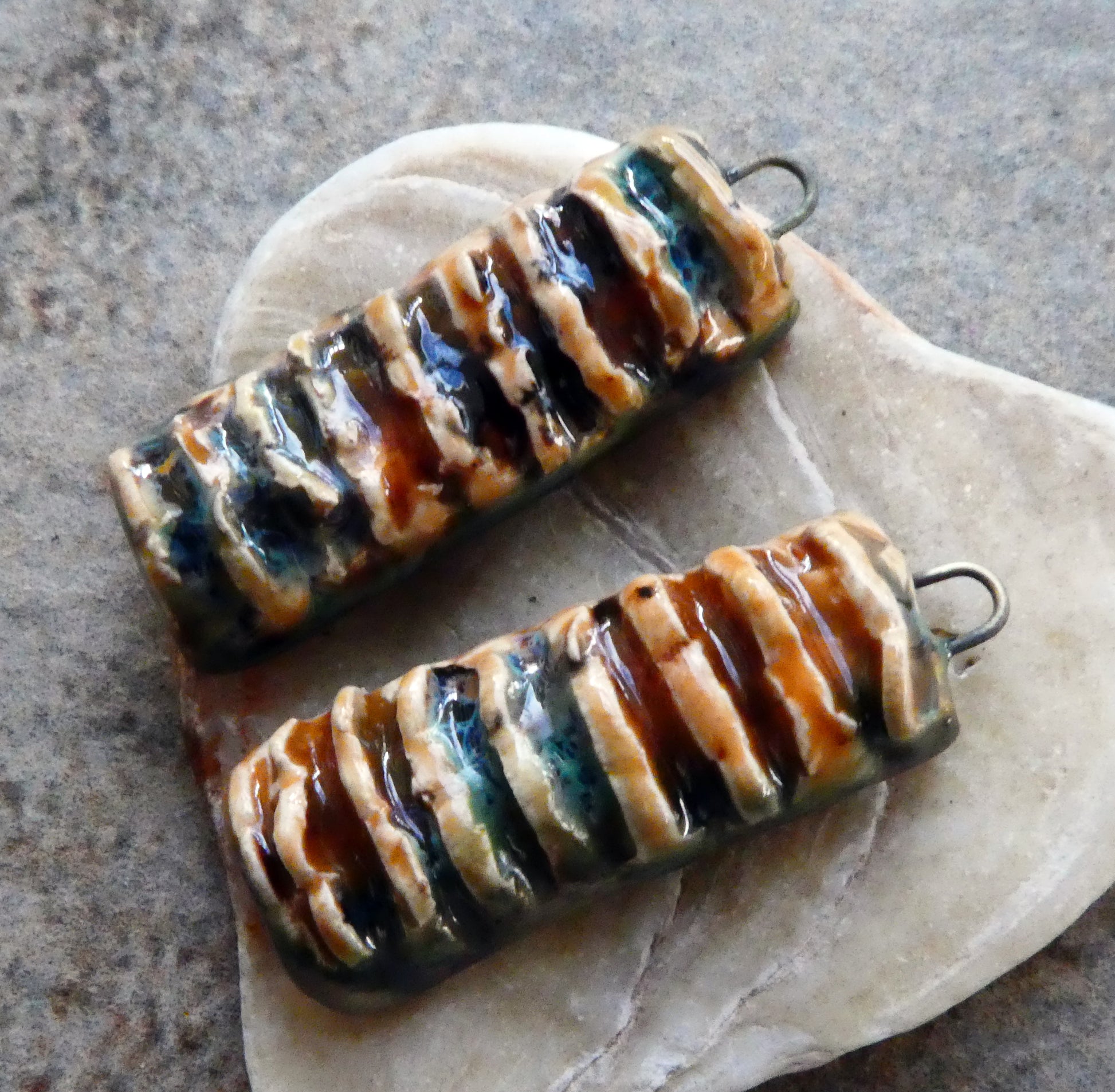 Ceramic Textured Tablet Earring Charms -Oriental Caramel