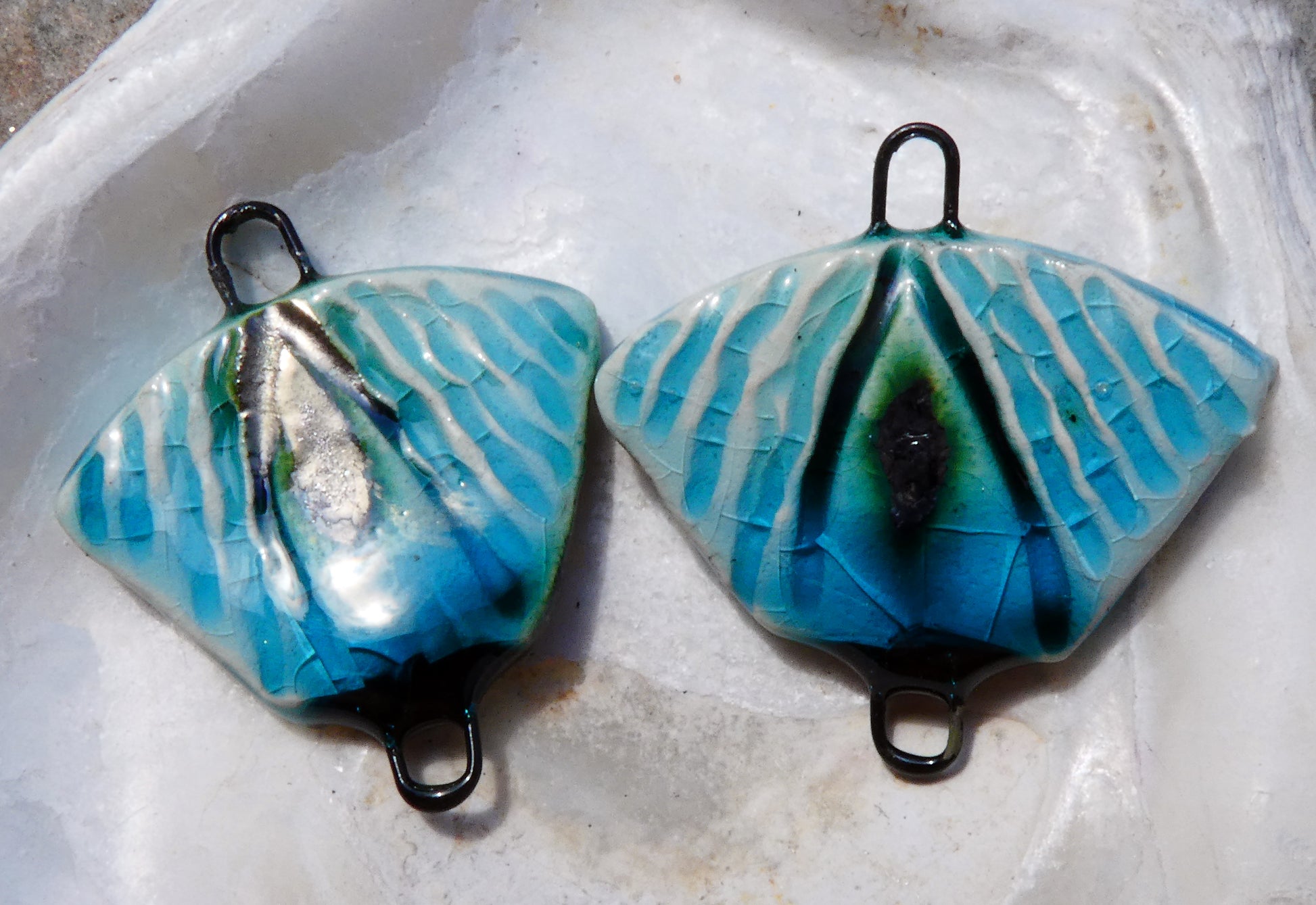 Ceramic Textured Wedge Connectors #2-Turquoise Crackle
