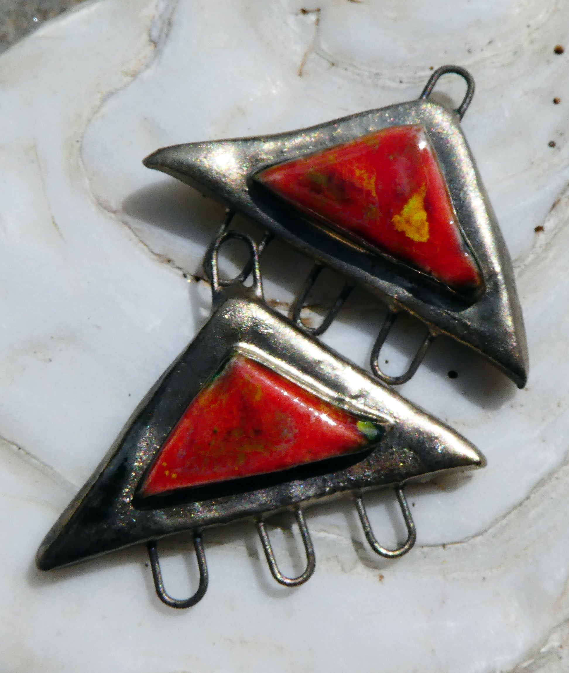 Ceramic Three Hoop Triangle Moulded Connectors -Firecracker
