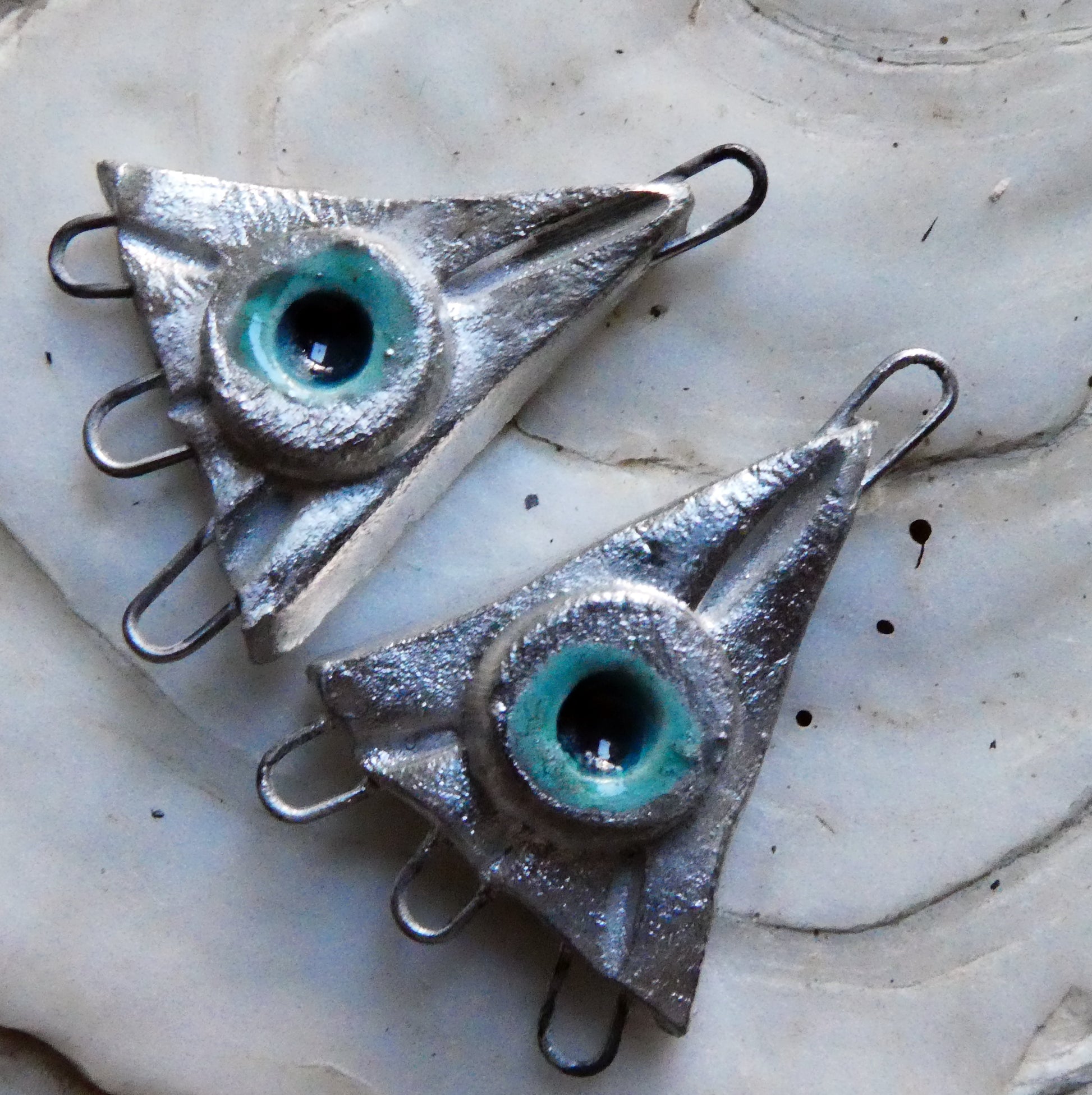 A pair of triangle silvery earring connectors.