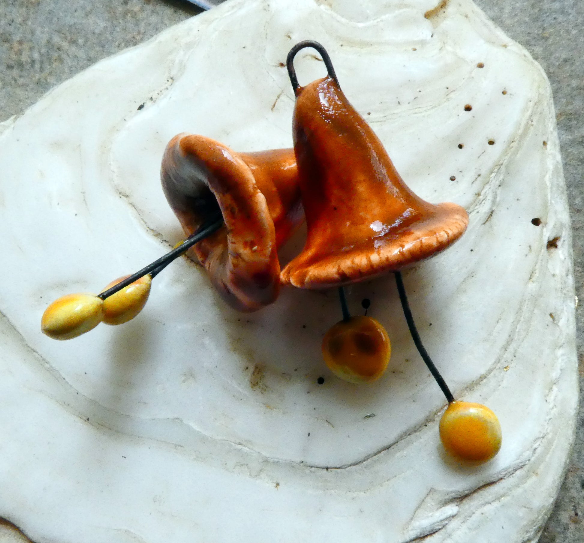 Ceramic Trumpet Flower Earring Charms -Vermilliion Sunburst