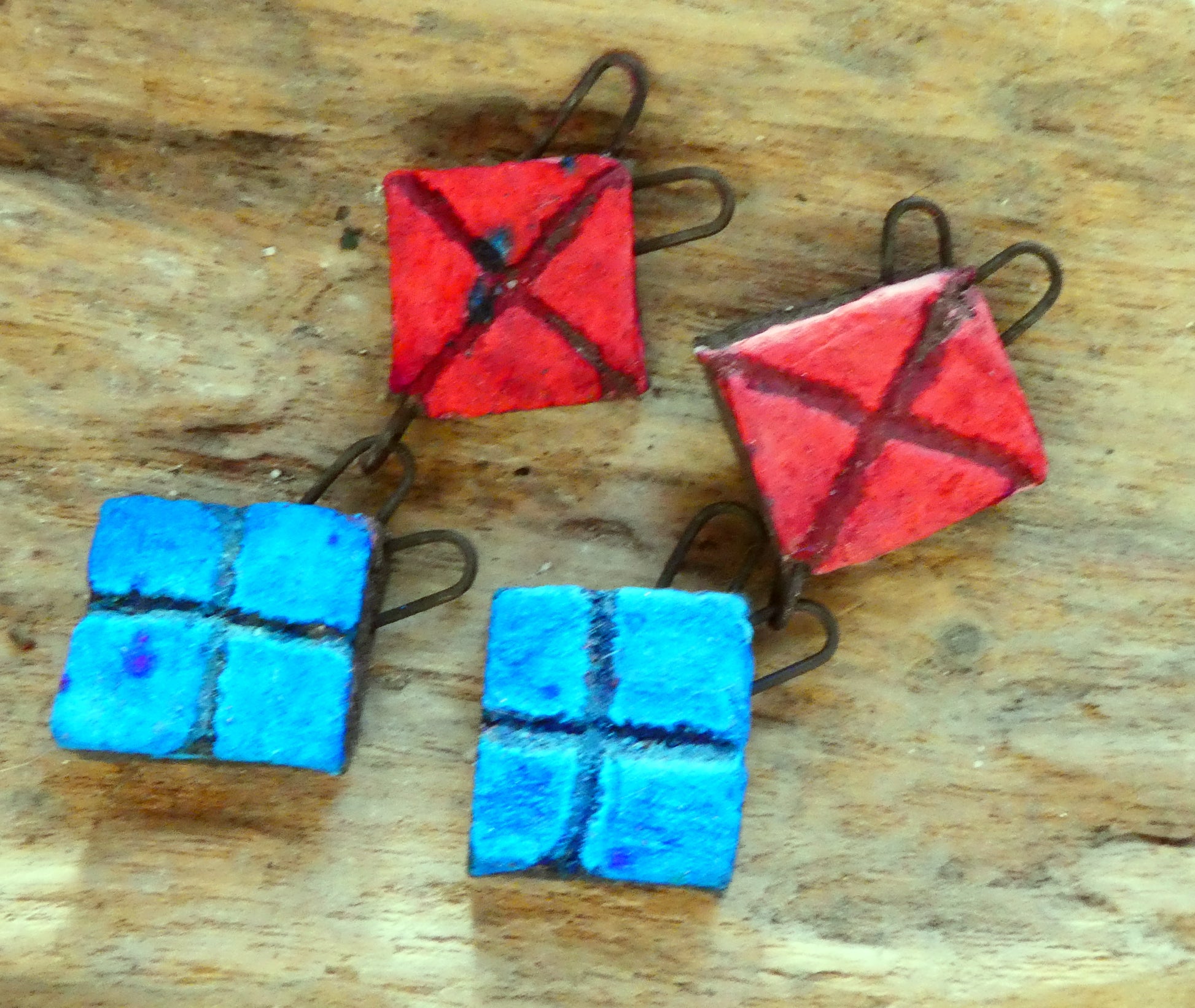 Ceramic Tumbling Gift Boxes Dangles - Red and Blue #1