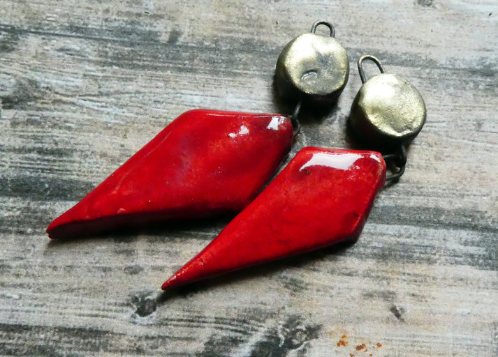 1 X LONG DIAMOND DANGLES - RED -6.25