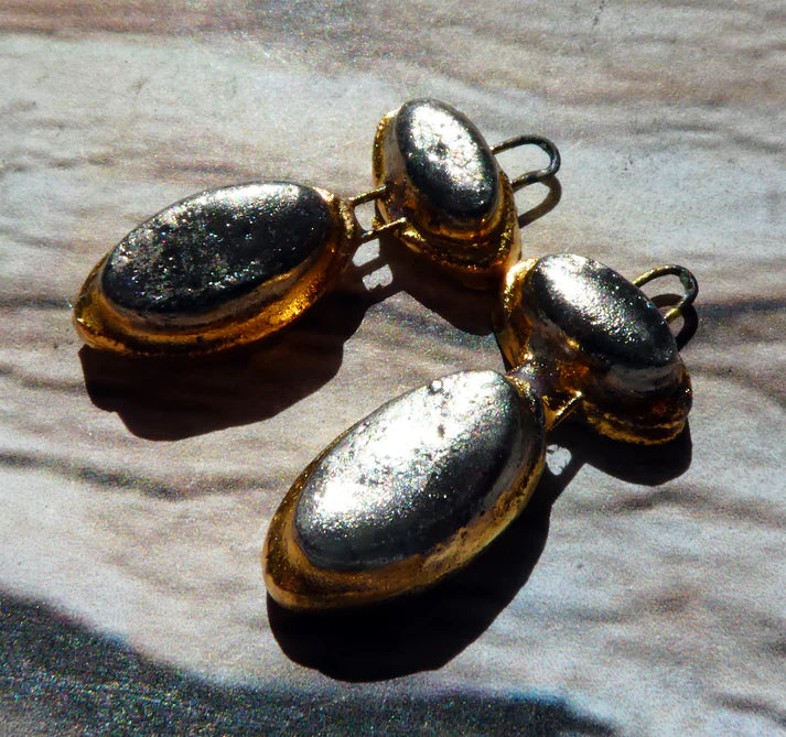 1 X MOULDED OVAL CHARMS - GOLD AND PLATINUM- 7.00
