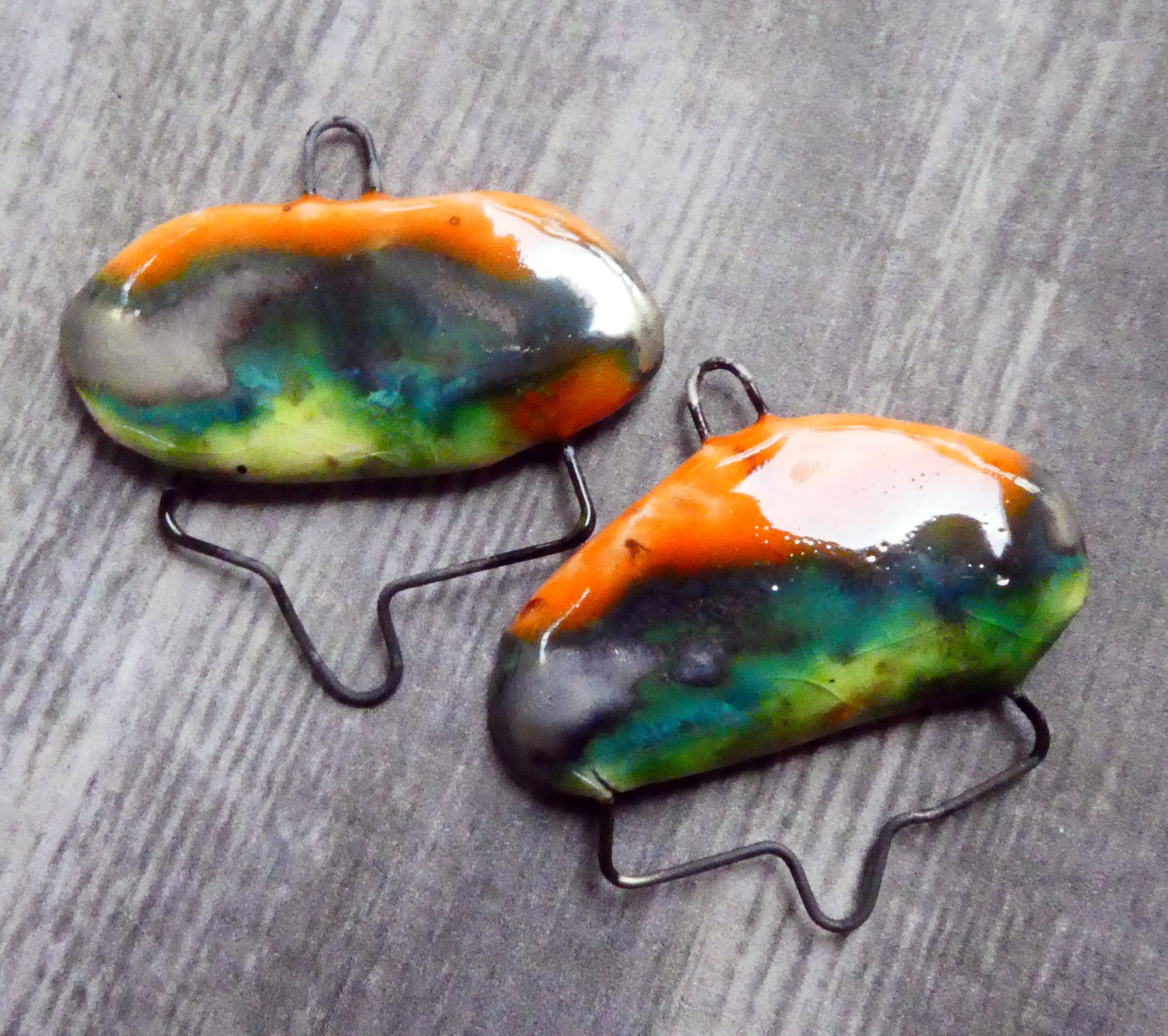 Ceramic Two Tone Earring Connectors - Wildfire and Pistachio