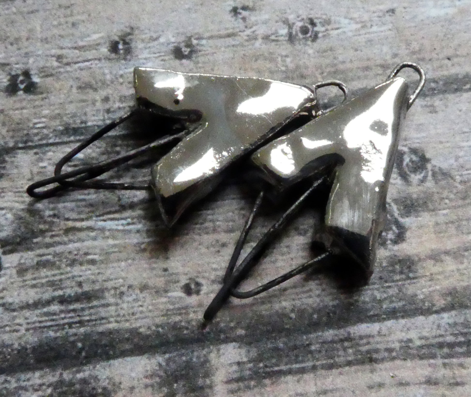 Ceramic V Shaped Double Hoop Connectors - Platinum Lustre