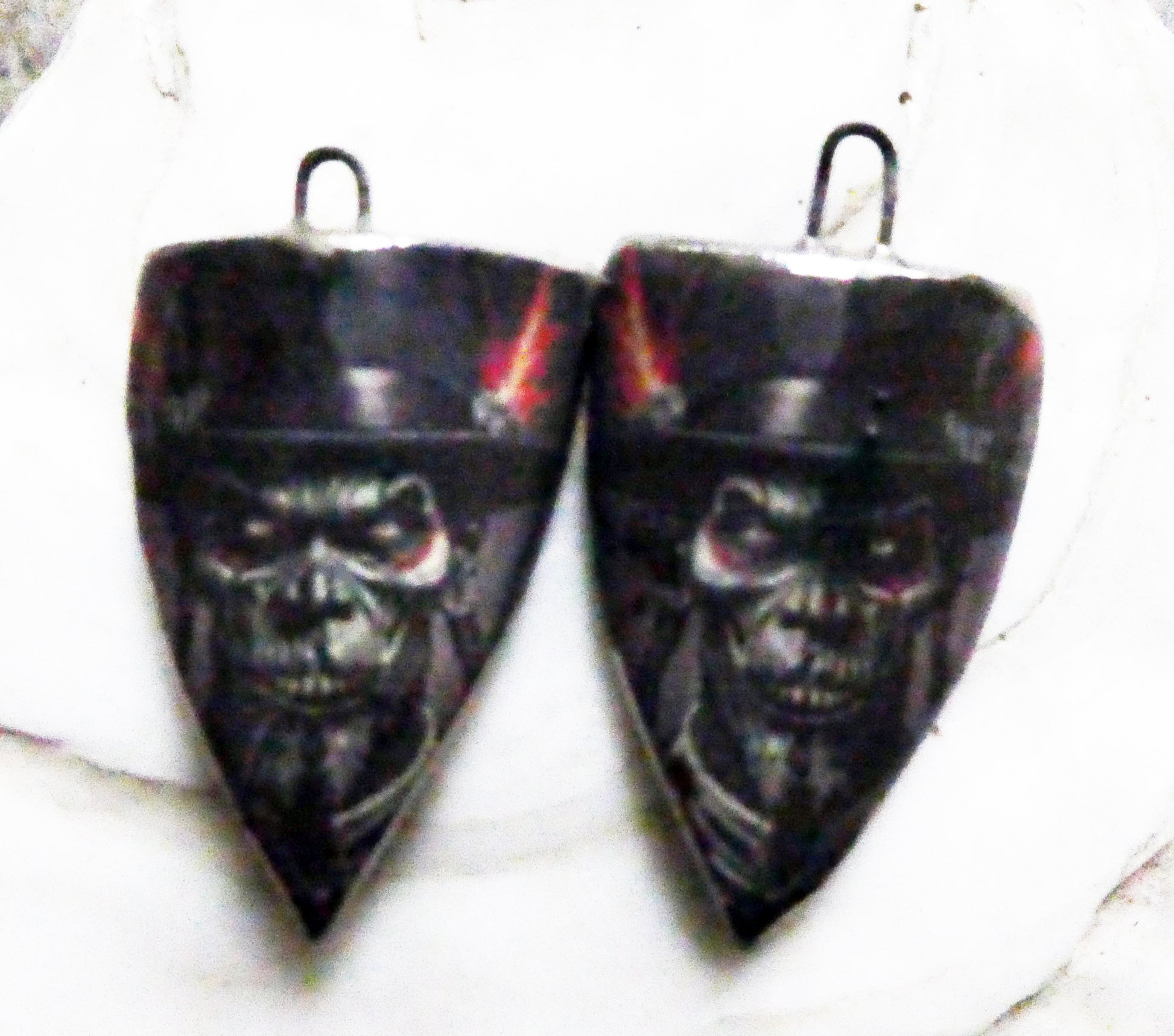 Ceramic Papa Legba Decal Shield Earring Charms #1