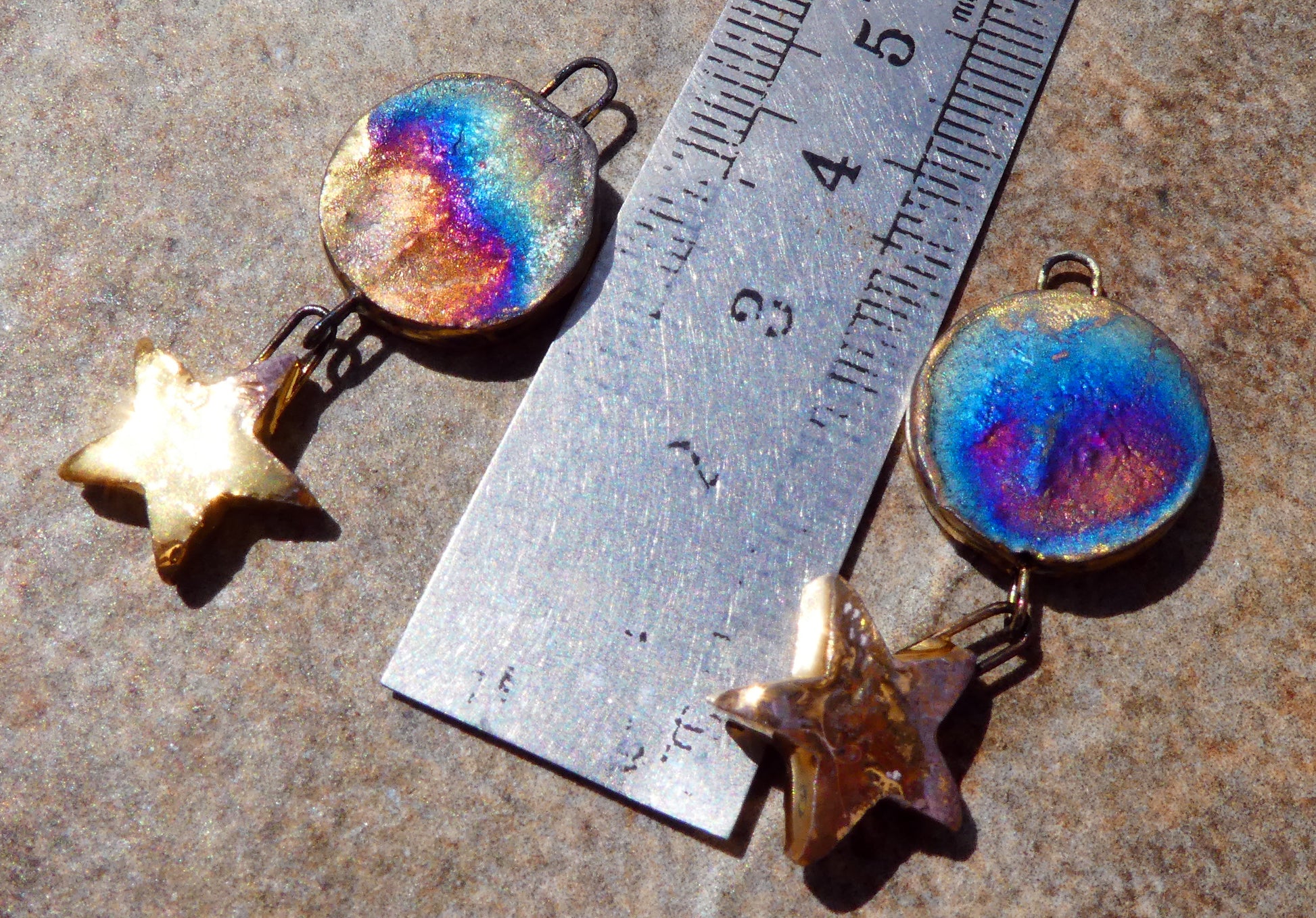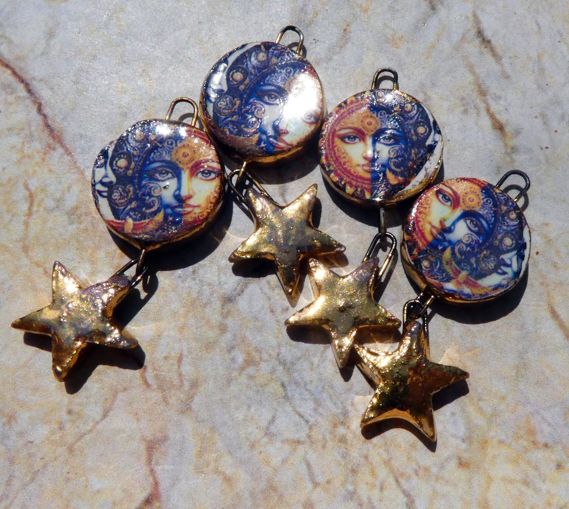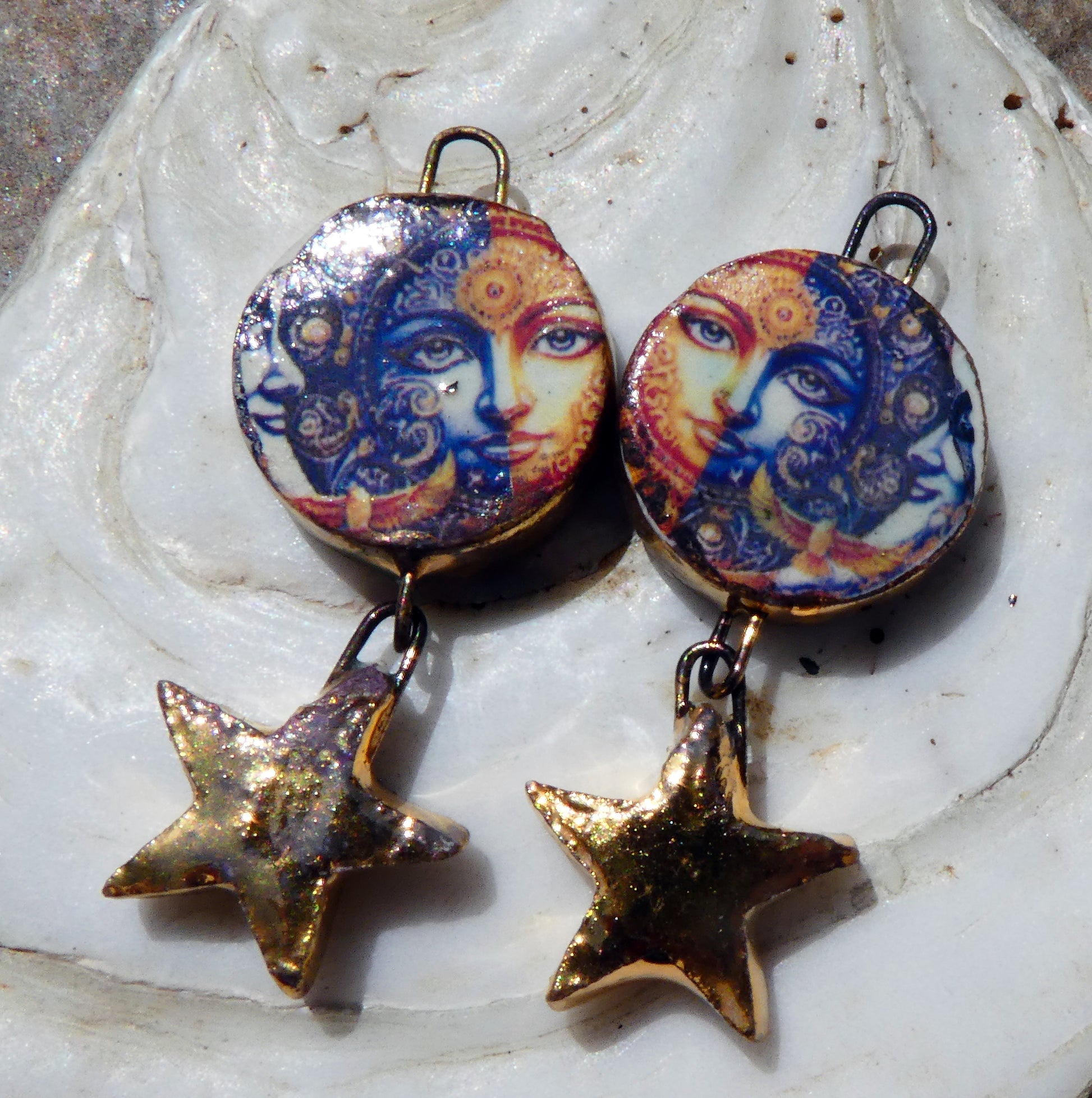 Ceramic Vintage Sun and Moon Decal and Star Earring Dangles #8