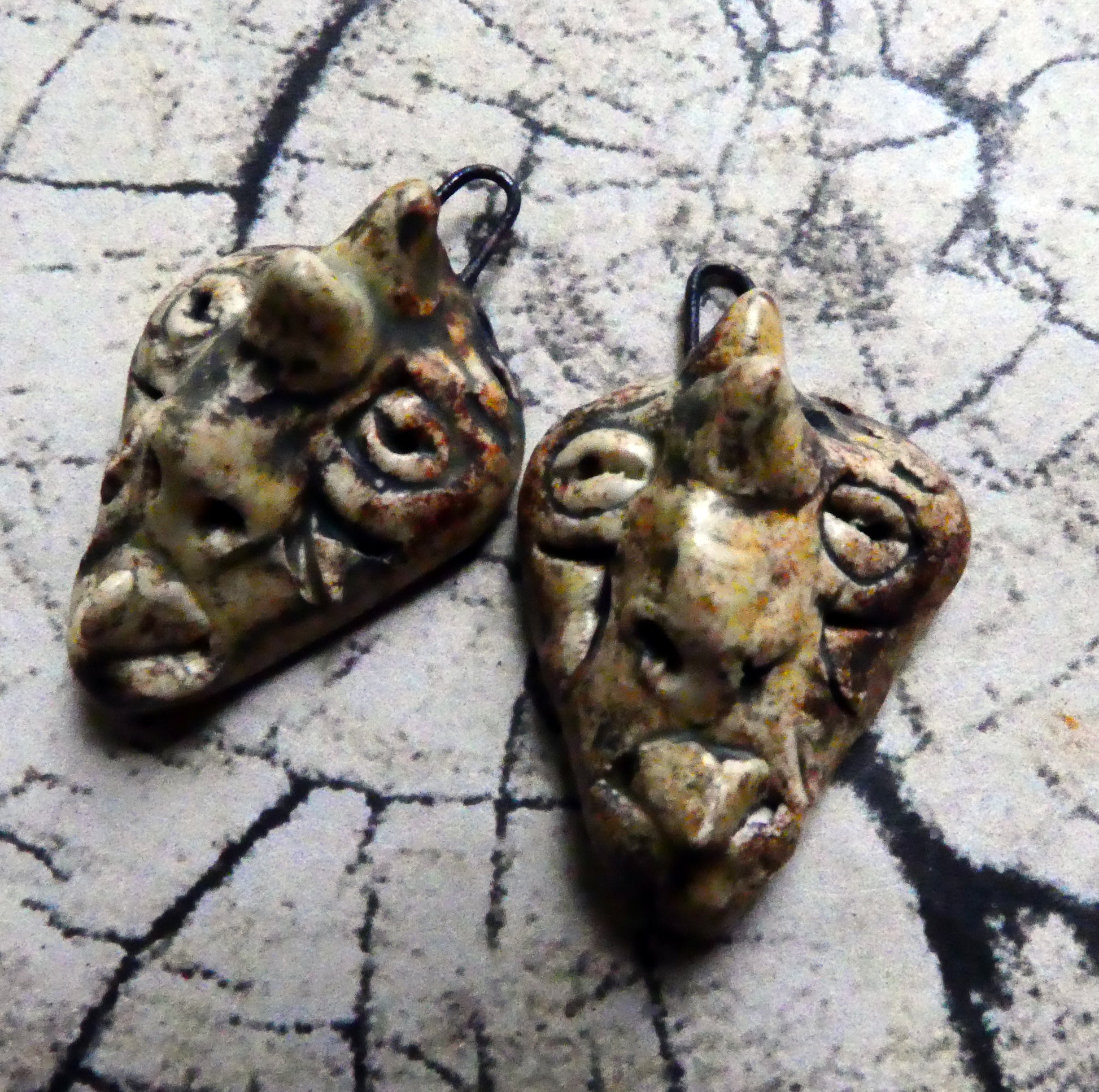 Hand sculpted in Earthstone and wire staples, and high fired. Then fired again with oxide and matte glaze.