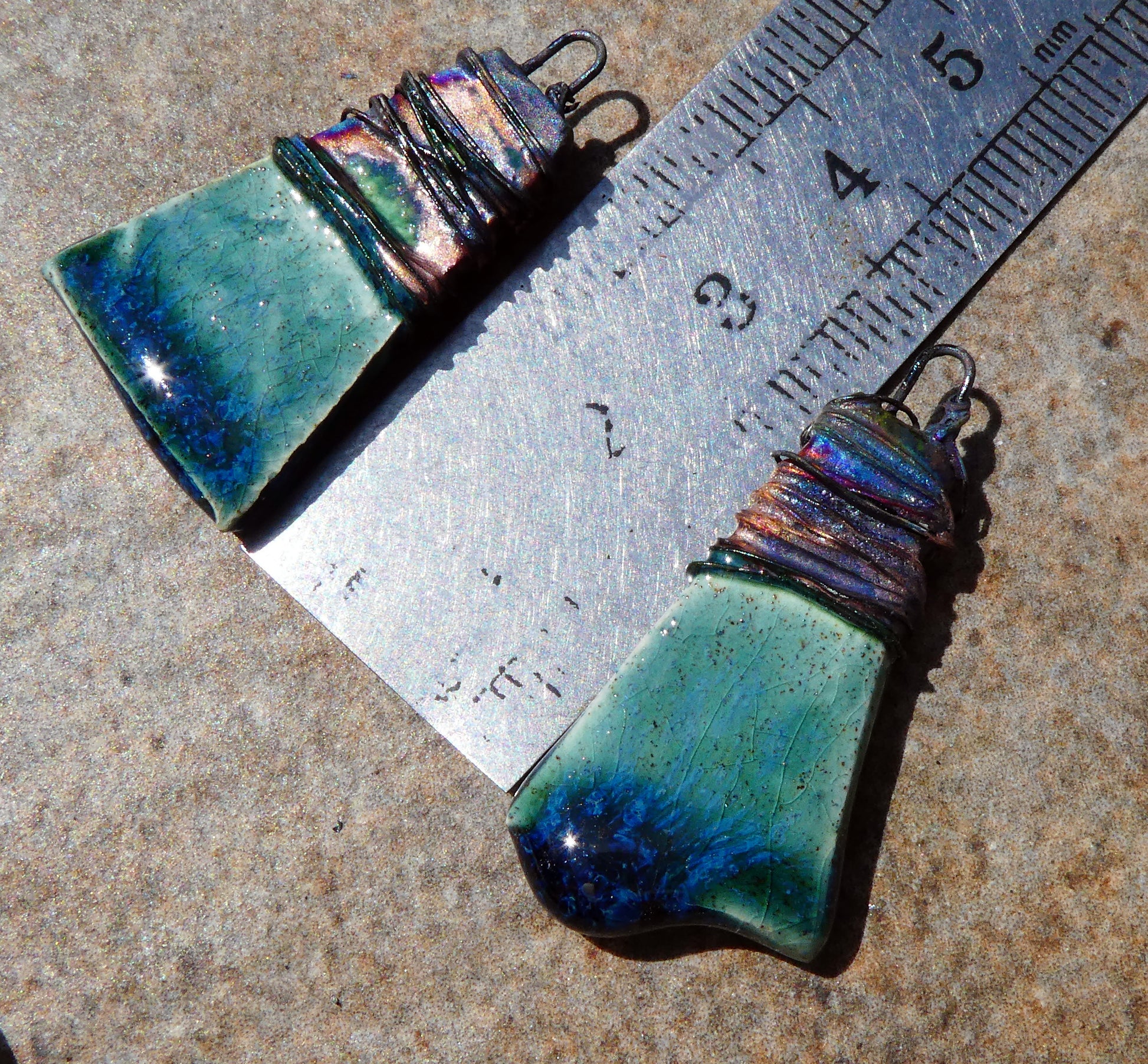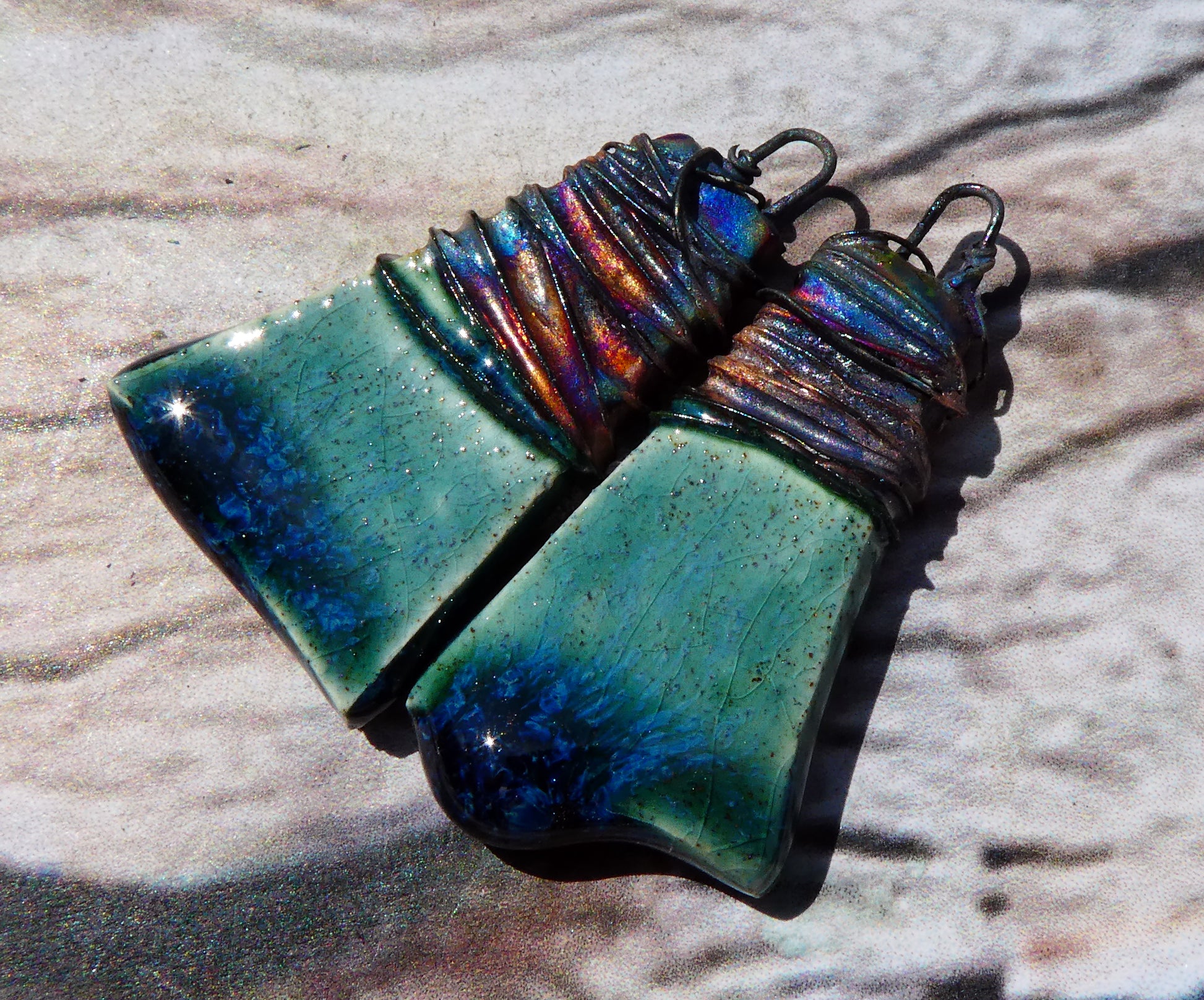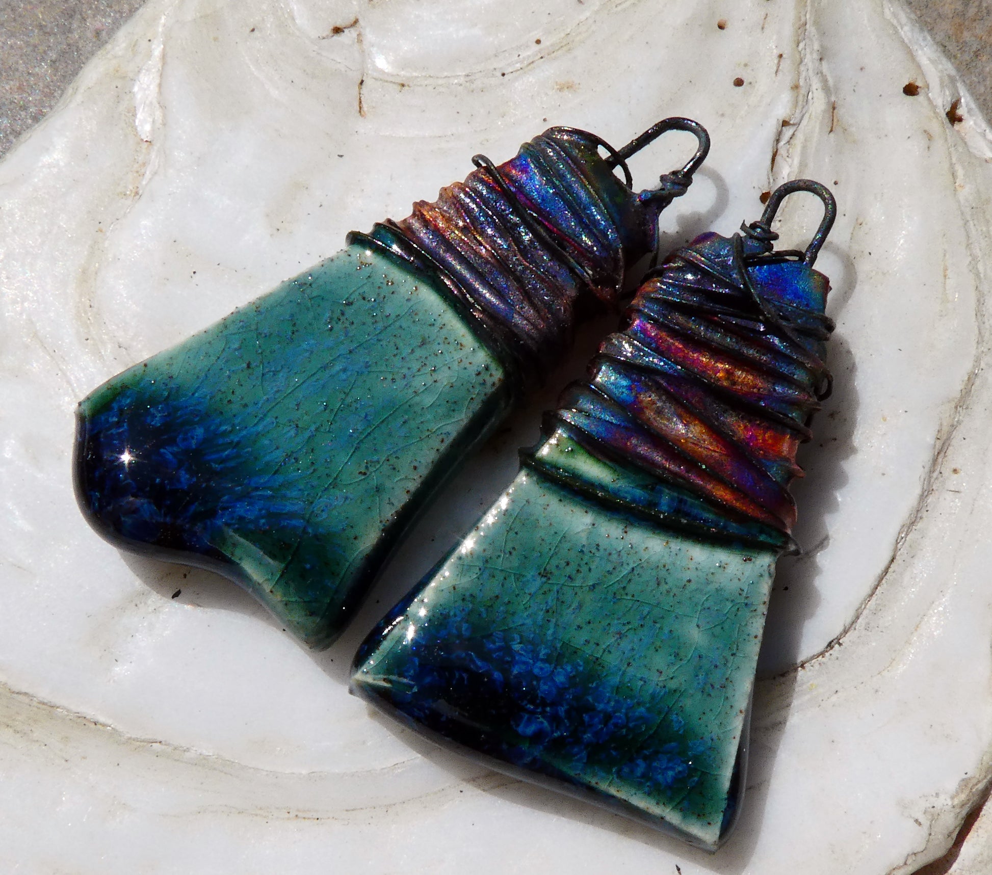 Ceramic Wire Wrapped Wedge Charms -Bora Bora