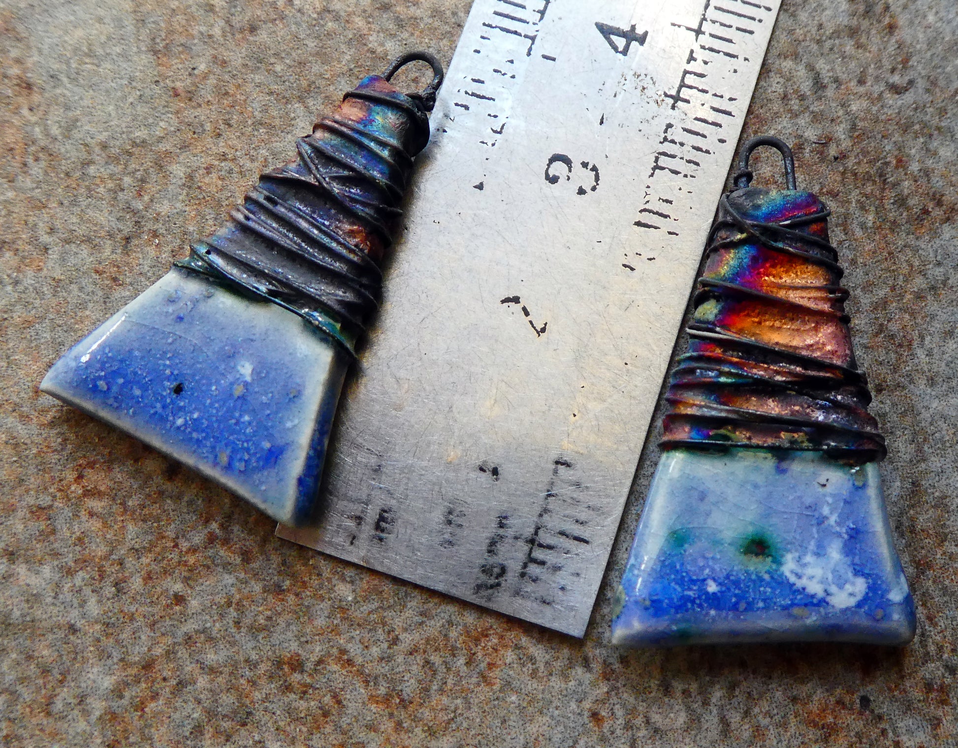 Ceramic Wire Wrapped Wedge Charms -Glacier Fire