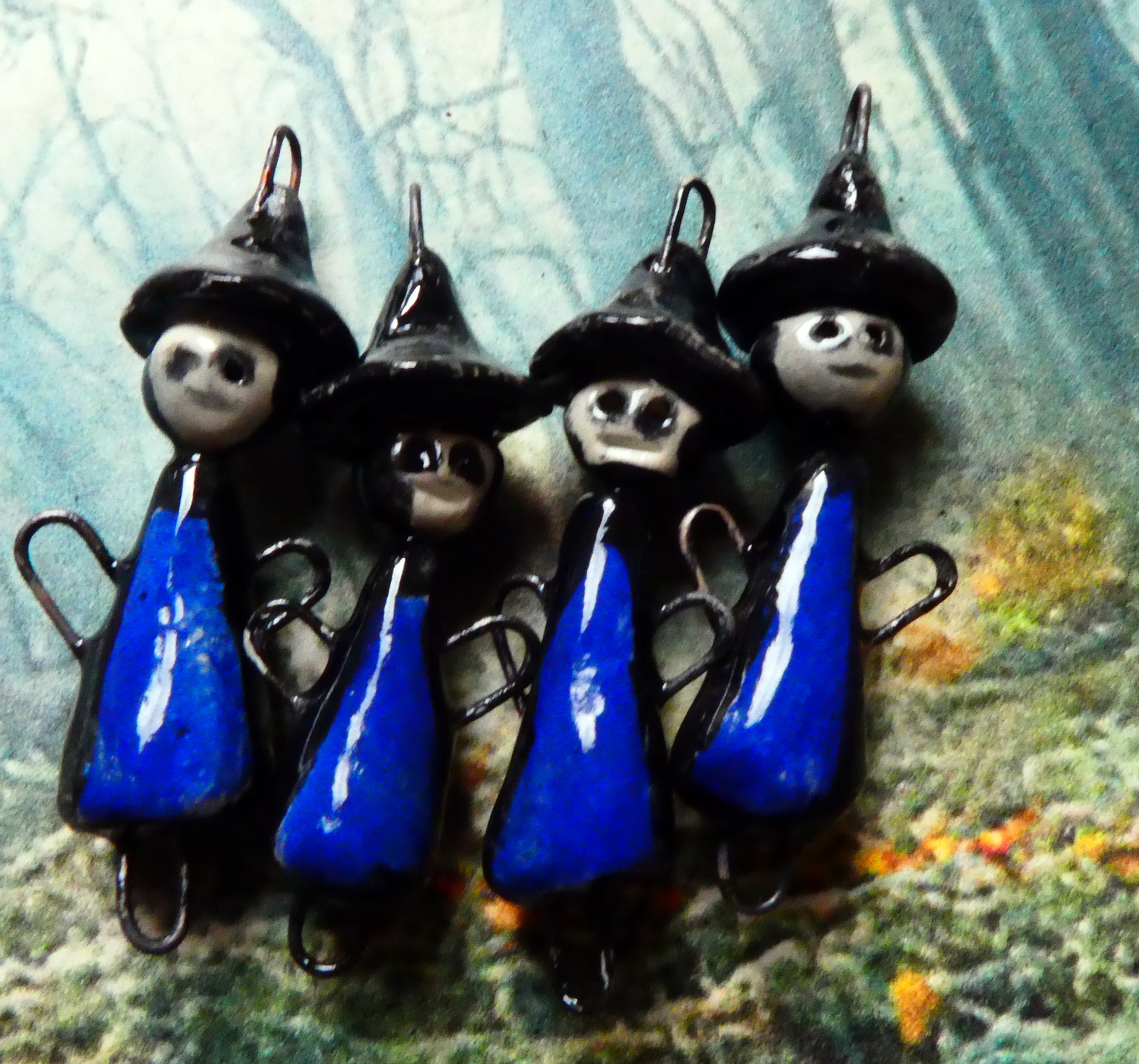 Ceramic Witches Earring Connectors - Dutch Blue