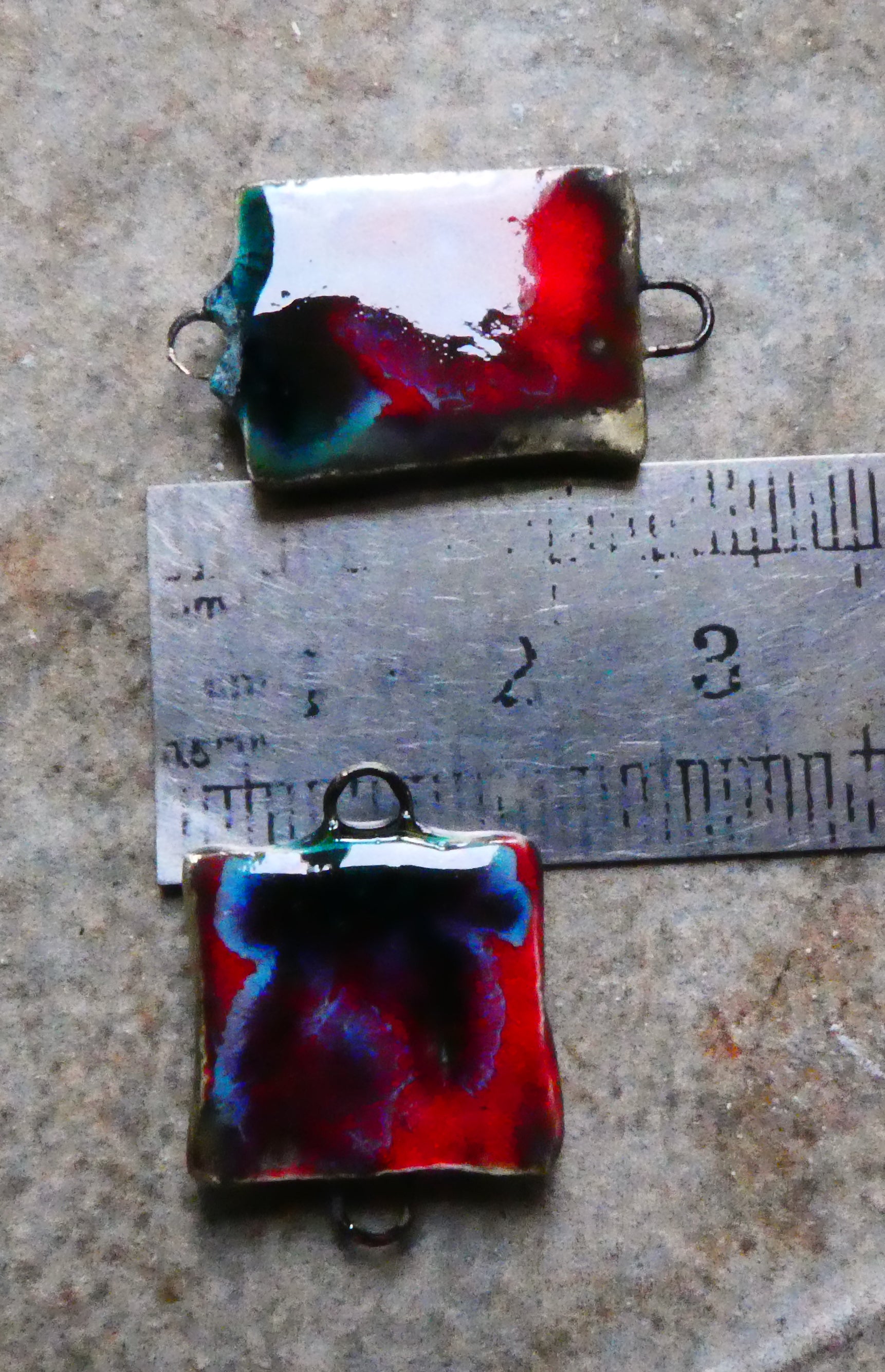 Ceramic Assymetric Rectangular Earring Connectors -Ladybird