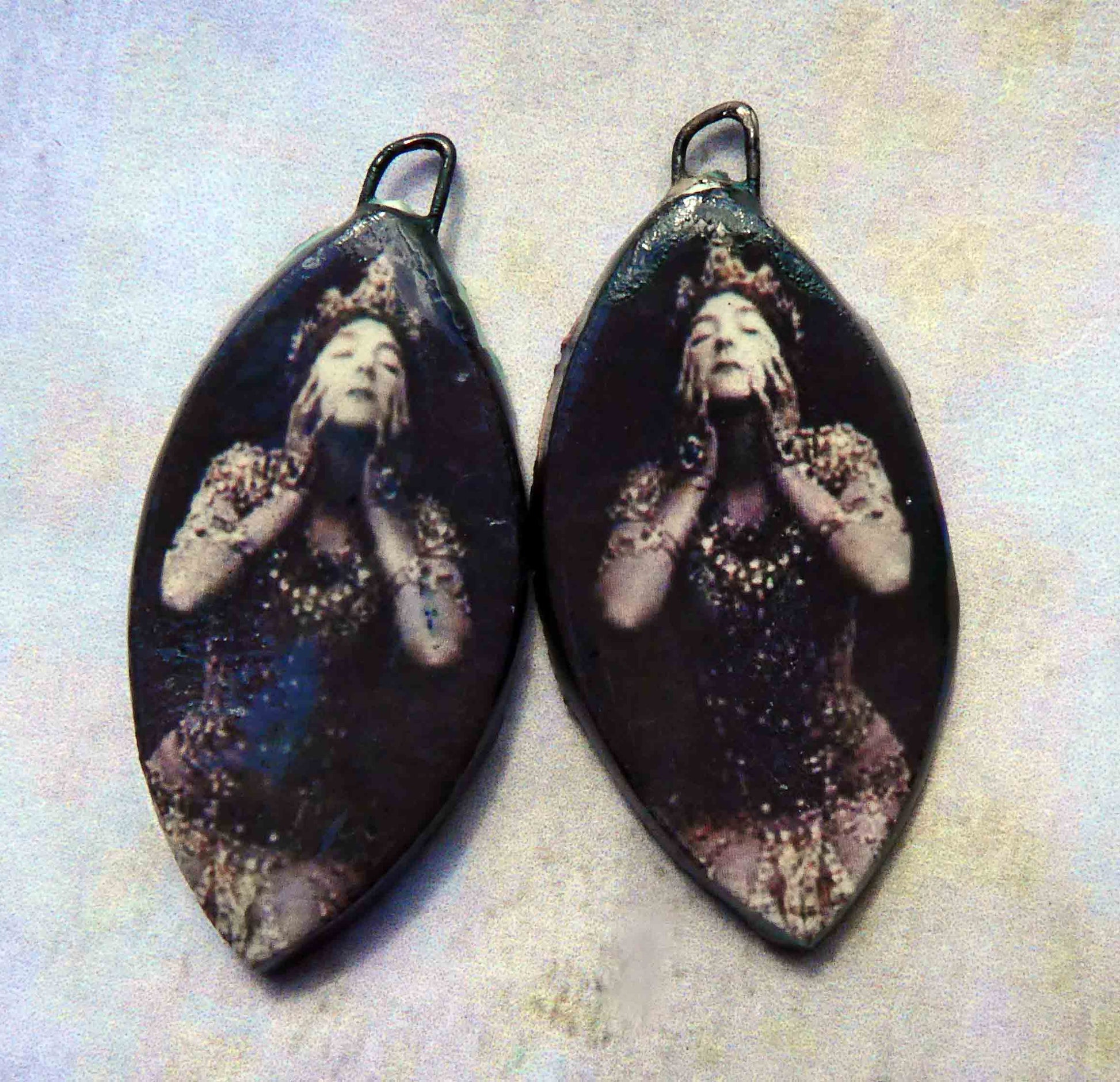 A pair of strong women themed decal earring charms.
