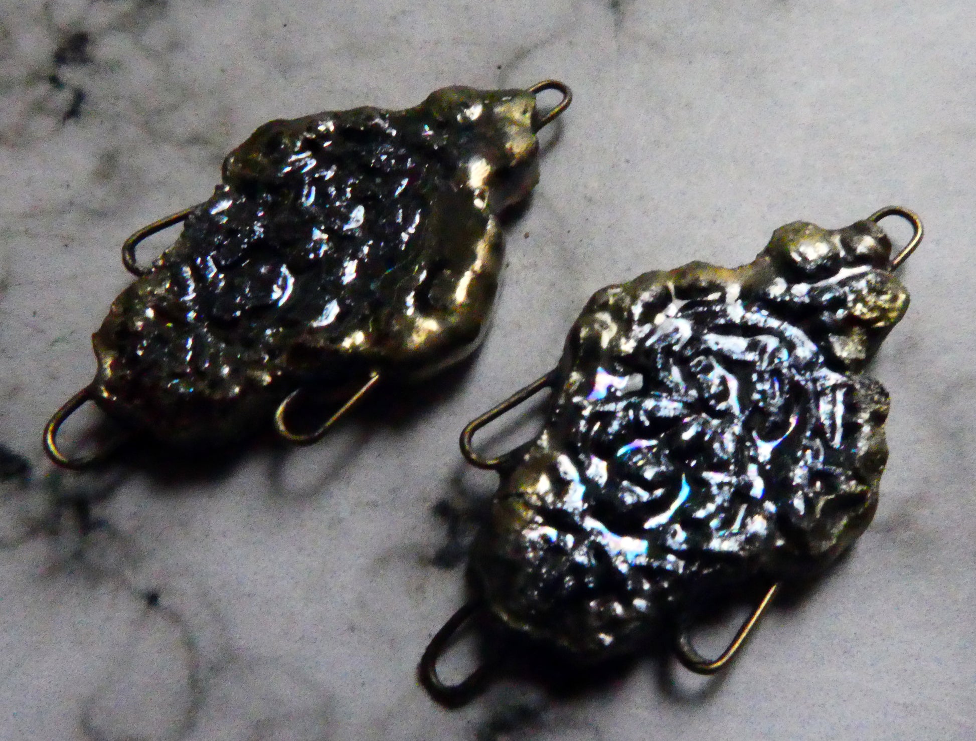 Black Filligree Earring Connectors -Mother of Pearl Lustre