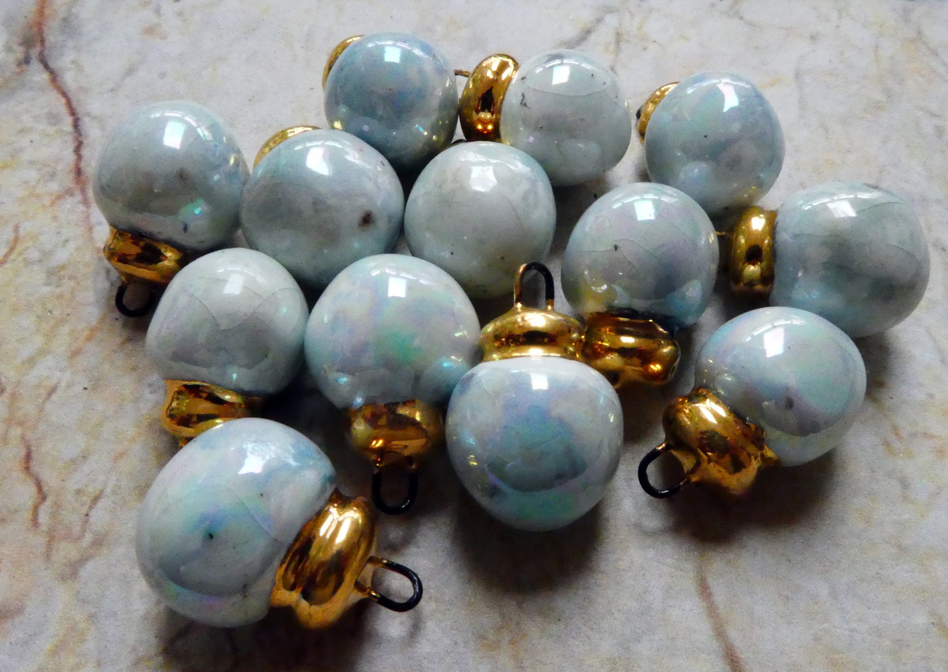 Porcelain Bobble Drops - Mother of Pearl and Gold Lustre